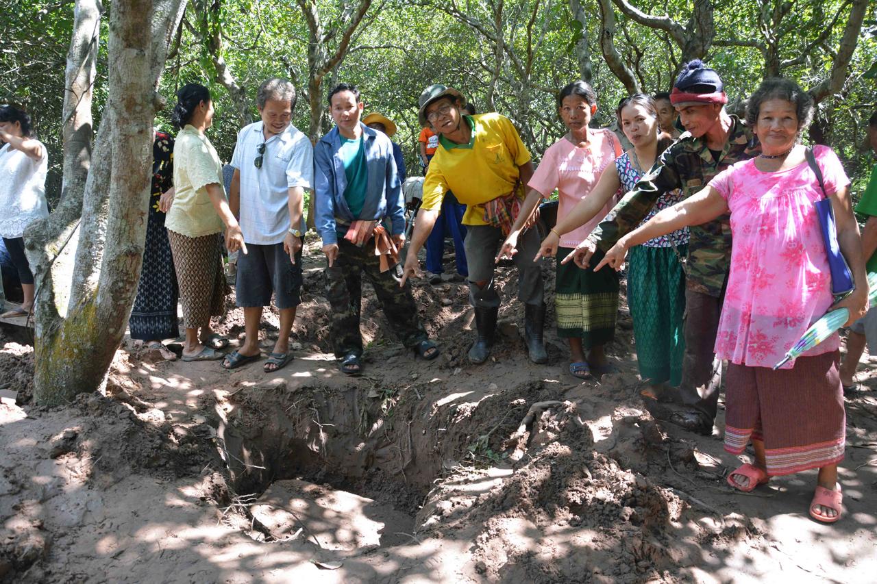 ด้านนายสมคิด กุตัน ผู้ใหญ่บ้านใหม่ หมู่ 14 ต.เมืองพาน อ.บ้านผือ กล่าวว่า ป่าบริเวณดังกล่าวเป็นป่าสาธารณะ เป็นดินที่ราชพัสดุ มีเนื้อที่ทั้งหมด 160 ไร่ เป็นแนวเทือกเขาภูพาน ใกล้กับอุทยานประวัติศาสตร์ภูพระบาท ต.เมืองพาน มีชาวบ้านมาขอเช่าพื้นที่ปลูกมะม่วงหิมพานต์จำนวน 10 ไร่ โดยนำรถไถมาไถดิน แต่ได้ปล่อยสวนมะม่วงหิมพานต์ทิ้งร้างมาหลายปีแล้ว ซึ่งตนเคยได้ยินผู้เฒ่าผู้แก่ในหมู่บ้าน เล่าให้ฟังว่า ป่าบริเวณนี้เคยเป็นวัดเก่าแก่ และเมื่อ 60 ปีก่อน เคยมีคนขุดพบใบเสมาแล้ว 3 ใบ
