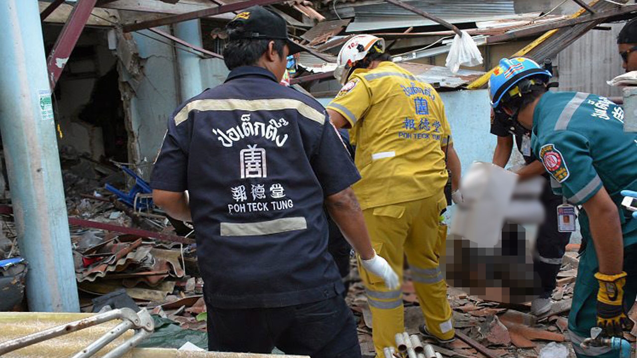 เจอศพเหยื่อบ้านระเบิดปริศนา แม่ค้าขายลูกชิ้น ปิ้งที่เคยเช่าหน้าร้านบ้านเกิดเหตุขายของเข้าไปรื้อเอาอุปกรณ์ขายของได้กลิ่นเหม็นคล้ายซากศพ ชวนชาวบ้านมาช่วยกันรื้อเศษกระเบื้องหลังคา พบศพคนงานขายซีดีสภาพชวนสยอง ส่วนสาเหตุระเบิด พฐ.คาดเป็นแก๊สมีเทนในถังพักใต้พื้นบ้าน