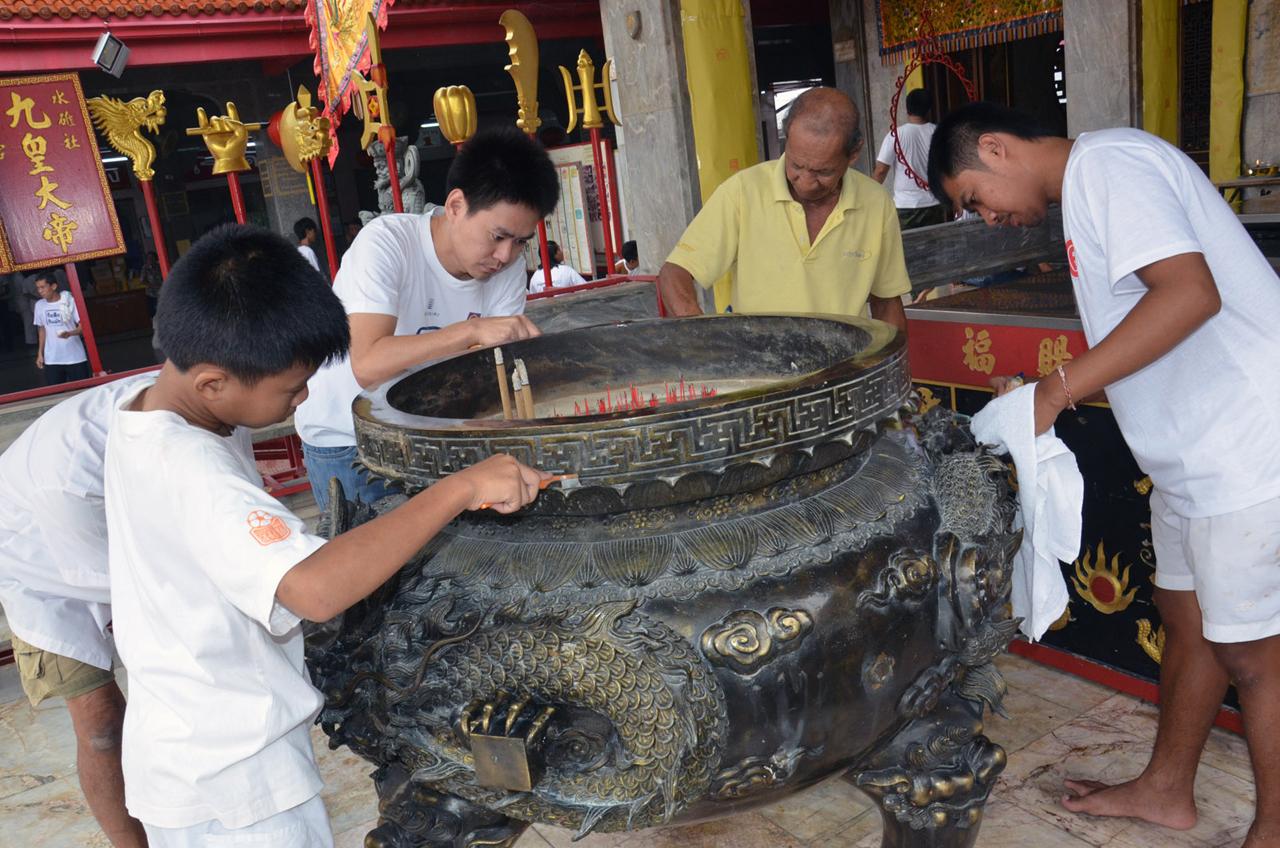 ประชาชน นักท่องเที่ยว แห่ร่วมทำความสะอาดศาลเจ้าใหญ่ภูเก็ต รับเทศกาลกินเจ ขณะ คกก.ศาลเจ้า ออกกฎเเหล็กม้าทรง เคร่งครัดวิถีโบราณ หากฝ่าฝืนสั่งห้ามร่วมพิธีกรรม ลดการบาดเจ็บ