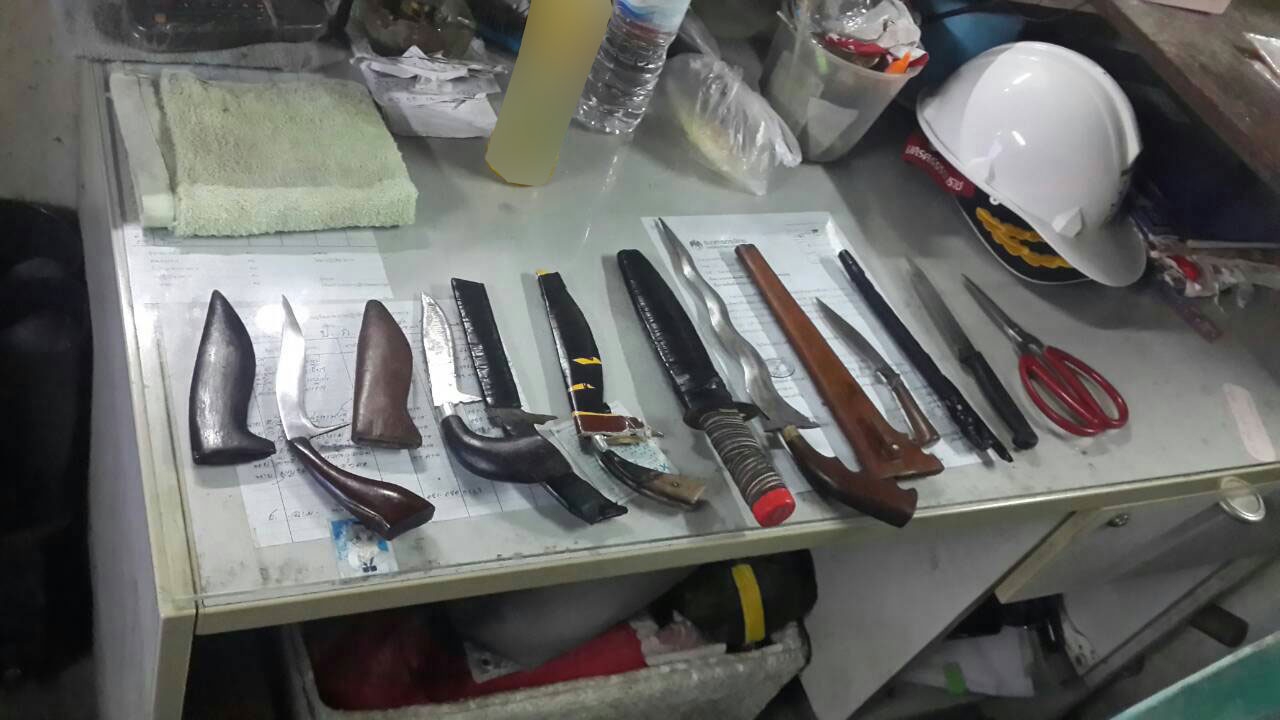 ตำรวจนครศรีธรรมราช ตั้งจุดตรวจวัยรุ่นที่ขี่จยย.จะเข้าไปเที่ยวงานประเพณีเทศกาลบุญสารทเดือนสิบ คืนแรกยึดมีดได้14เล่ม ปืนลูกซองสั้น1กระบอก คาดหากตรวจไม่เจอ อาจนำเข้าไปก่อเหตุยิงแทงกันจนบาดเจ็บล้มตาย...