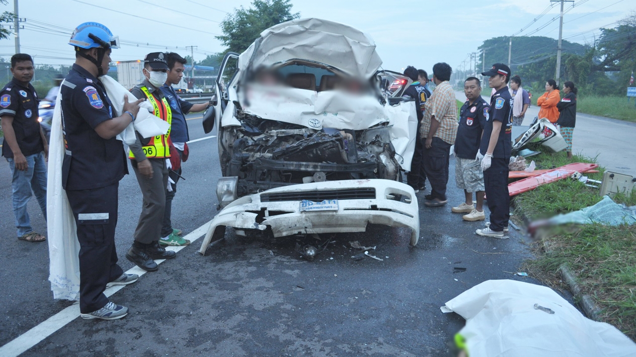 รถตู้ขนเจ้าหน้าที่ ไปตรวจสุขภาพให้พนักงานบริษัทที่โคราช ระหว่างทาง พุ่งอัดท้ายสิบล้อ ดับ 5 สาหัส 6 ตร.คาดคนขับอาจหลับใน หรือช่วงดังกล่าวมีหมอกลงจัด ทำให้มองทางไม่เห็น ...