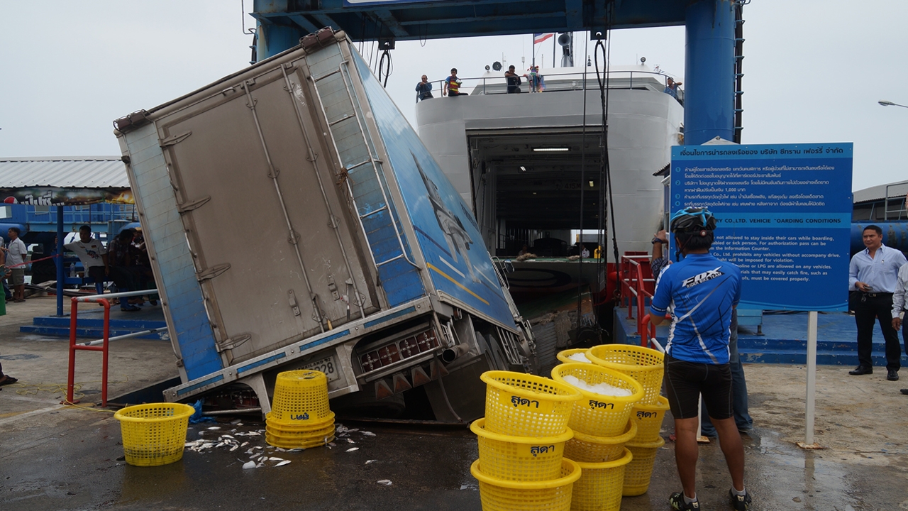 เมื่อวันที่ 9 ต.ค.58 เกิดเหตุรถสิบล้อบรรทุกอาหารทะเลสด น้ำหนัก 24 ตัน มูลค่ากว่า 1 ล้านบาท ทะเบียน 82-0328 สุราษฎร์ธานี ของบริษัท พรพิษณุ ซึ่งมี นายสมนึก โสมพงส์ เป็นคนขับ พลัดตกลงจากสะพานบริเวณท่าเทียบเรือโดยสารของบริษัท ซีทรานเฟอร์รี่ เกาะสมุย ในช่องท่าเทียบเรือที่ 1 ตั้งอยู่ ม.3 ต.อ่างทอง อ.เกาะสมุย จ.สุราษฎร์ธานี โดยเหตุเกิดขณะคนขับรถจะนำรถตู้สิบล้อคันดังกล่าวลงเรือเฟอร์รี่ เพื่อนำอาหารทะเลสดข้ามฝากจาก อ.เกาะสมุย ไปขึ้นฝั่งที่ท่าเทียบเรือ อ.ดอนสัก ก่อนส่งต่อไปยัง จ.สมุทรสาคร แต่โชคดีที่ไม่มีใครได้รับบาดเจ็บ