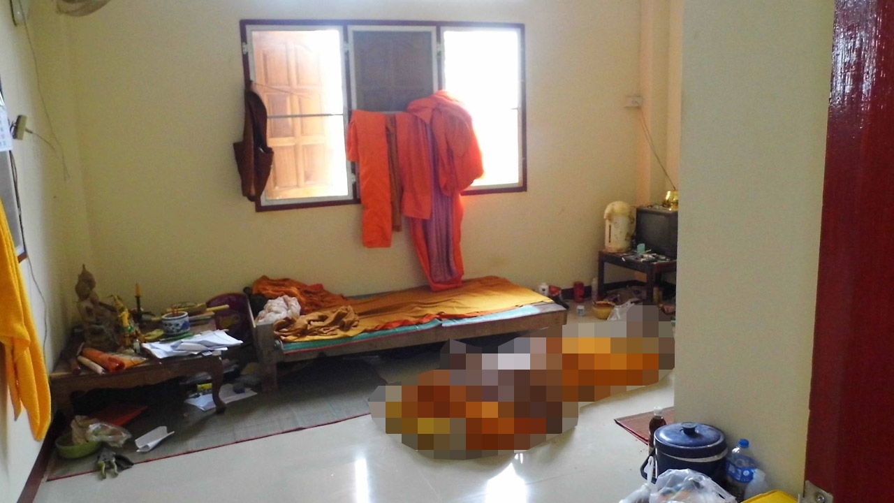 ที่เกิดเหตุ ภายในห้องบนศาลาการเปรียญวัดทรายทองศรัทธาราม พบศพของพระณรงค์ ลบลม ฉายา ฉนฺทธมฺโม อายุ 59 ปี พระลูกวัด นอนหงายอยู่บนพื้นห้อง บริเวณปลายเท้าพบยาลม ยาธาตุ ยาแก้ปวดวางอยู่ แพทย์ตรวจตามร่างกายไม่พบร่องรอยถูกทำร้ายใดๆ คาดว่าเลือดไปหล่อเลี้ยงหัวใจไม่ทัน จึงเป็นเหตุให้หัวใจล้มเหลวเฉียบพลัน มรณภาพมาแล้วไม่ต่ำกว่า 4 ชม.