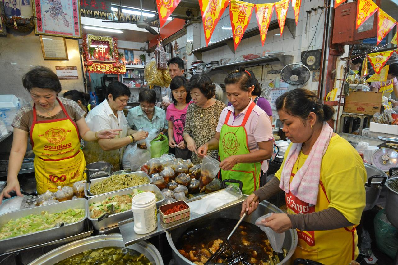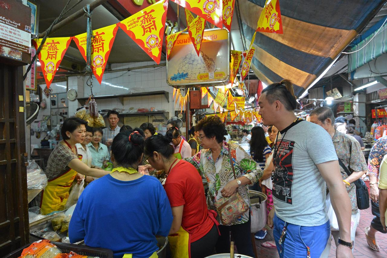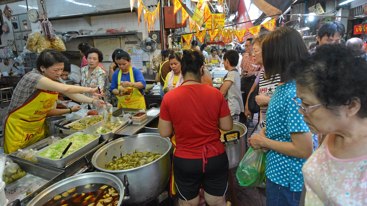 ส่วนที่ตลาดเก่าเยาวราช ถนนเยาวราช ซอย 6 ตั้งแต่ช่วงเช้า ประชาชนออกมาจับจ่ายซื้อหาผักและวัตถุดิบที่จะนำไปใช้ในการประกอบอาหารเจกันอย่างคึกคัก ซึ่งจากการสำรวจราคาอาหารเจ วัตถุดิบและเครื่องปรุงอาหารเจ พบว่าปรับราคาขึ้นในบางรายการ ซึ่งร้านค้าติดป้ายบอกราคาชัดเจน แต่ยังมีหลายร้านที่ไม่ติดป้ายบอกราคา คนซื้อต้องสอบถามและต่อรองราคากันเอง โดยหมี่กึง กก.ละ 70-80 บาท แปะก๊วย กก.ละ 80-90 บาท เต้าหู้แผ่นละ 14-15 บาท หัวผักกาดดอง กก.ละ 70 บาท หน่อไม้จีน กก.ละ 150 บาท และเห็ดหอม กก.ละ 400-450 บาท จากการสอบถามผู้ซื้อ ส่วนใหญ่พอรับได้กับราคาอาหารเจที่ผู้ค้าพยายามตรึงราคาให้ใกล้เคียงกับราคาเดิม ด้านอาหารเจสำเร็จรูปมีราคาขายเฉลี่ยถุงละ 50 บาท โดยผู้ค้ายืนยันแม้ต้นทุนราคาผักและเครื่องปรุงจะแพงขึ้น แต่ไม่ปรับขึ้นราคาอาหาร เพราะส่วนใหญ่เป็นลูกค้าประจำ โดยเมนูยอดนิยม ได้แก่ ต้มจับฉ่ายเจ ต้มหน่อไม้จีน พะโล้เจ ต้มกะหล่ำปลี