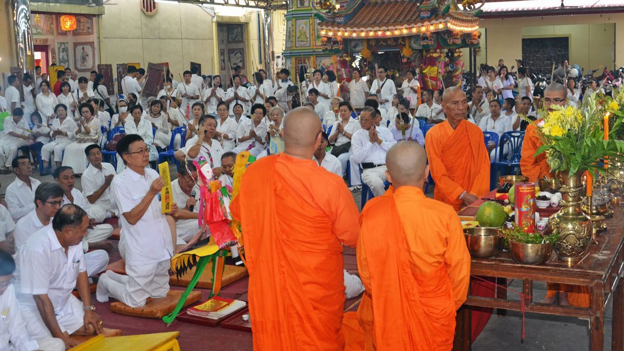กินเจคึกคัก - เทศกาลกินเจ จ.นครปฐม คณะกรรมการโรงเจเหงี่ยนเต้าตั๊ว ปุนเถ้ากง โรงเจเก่าแก่ ร่วมอัญเชิญเทพเจ้า 9 พระองค์ลงจากสวรรค์แห่ให้ประชาชนกราบไหว้ก่อนประดิษฐานที่โรงเจ มีประชาชนเข้ากราบไหว้มากมาย.