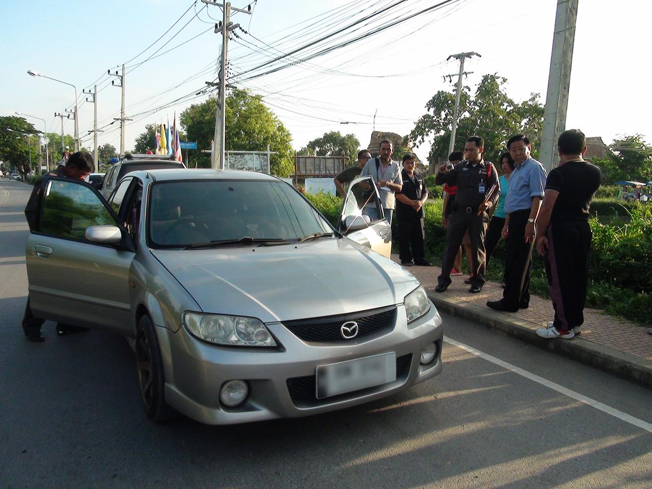ในที่เกิดเหตุ พบรถเก๋ง มาสด้า 323 สีเทา ทะเบียน กพ 214 อยุธยาฯ สภาพกระจกประตูด้านหน้าซ้ายแตกละเอียด ภายในรถพบแก้วน้ำที่ถูกขว้างใส่ตกอยู่ ส่วนที่เบาะนั่งคนขับ มีผู้โดยสารที่นั่งมาในรถได้รับบาดเจ็บถูกเศษกระจกบาดที่แขนข้างซ้ายและยังถูกทำร้ายร่างกายด้วย เจ้าหน้าที่มูลนิธิพุทไธสวรรย์จึงนำตัวส่งโรงพยาบาลพระนครศรีอยุธยา