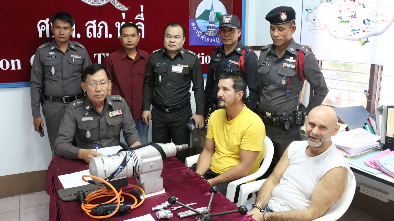 เมื่อเวลา 09.00 น. วันที่ 15 ต.ค. 58 พ.ต.อ.สุรพงษ์ อ่อนปุย ผกก.สภ.ท่าลี่ จ.เลย พ.ต.ท.เปลี่ยน นามพรมมา รอง ผกก.ป. พ.ต.ท.สุวิจักขณ์ เนติเจริญรุจน์ รอง ผกก.สส. นำตัว นายมิลาน นิโคลิค (Milan Nikolic) อายุ 48 ปี และ นายเบรนิเลฟ ลาซิค (Lazic Branislav) อายุ 55 ปี สัญชาติเซอร์เบียทั้งคู่ มาสอบปากคำโดยมีล่ามช่วยแปลภาษา โดยถูกจับกุมวานนี้ขณะเดินแบกถุงเป้สะพายสีดำใบขนาดใหญ่ อยู่บริเวณสวนยางพาราริมน้ำเหือง บ้านหาดเจริญ หมู่ 4 ต.น้ำแคม อ.ท่าลี่ ลักษณะมีพิรุธ จึงได้ขอตรวจค้นเอกสารการเข้าเมืองแต่ไม่มี ค้นเป้พบเครื่องเจาะคอนกรีต 1 เครื่อง ประแจหกเหลี่ยม 1 ตัว ประแจปากตาย 1 ตัว เหล็กเกลียวยึดติดผนัง 6 ตัว อุปกรณ์ประกอบเครื่องเจาะ 4 อัน มือหมุนปรับขึ้นลง เครื่องเจาะ 1 อัน ได้นำตัวมาสอบขยายผลที่ สภ.ท่าลี่