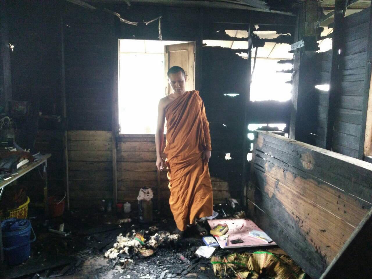 พระวัดทุ่งศรีเมือง จ.อุบลราชธานี ออกบิณฑบาต กลับมาเจอกุฏิไฟไหม้ วอดเอกสาร - พระเครื่องนับร้อยองค์ รวมมูลค่ากว่า 5 แสนบาท ตร.คาด ไฟฟ้าลัดวงจร พระเจ้าของห้องเผย เสียบชาร์จแบตมือถือทิ้งไว้