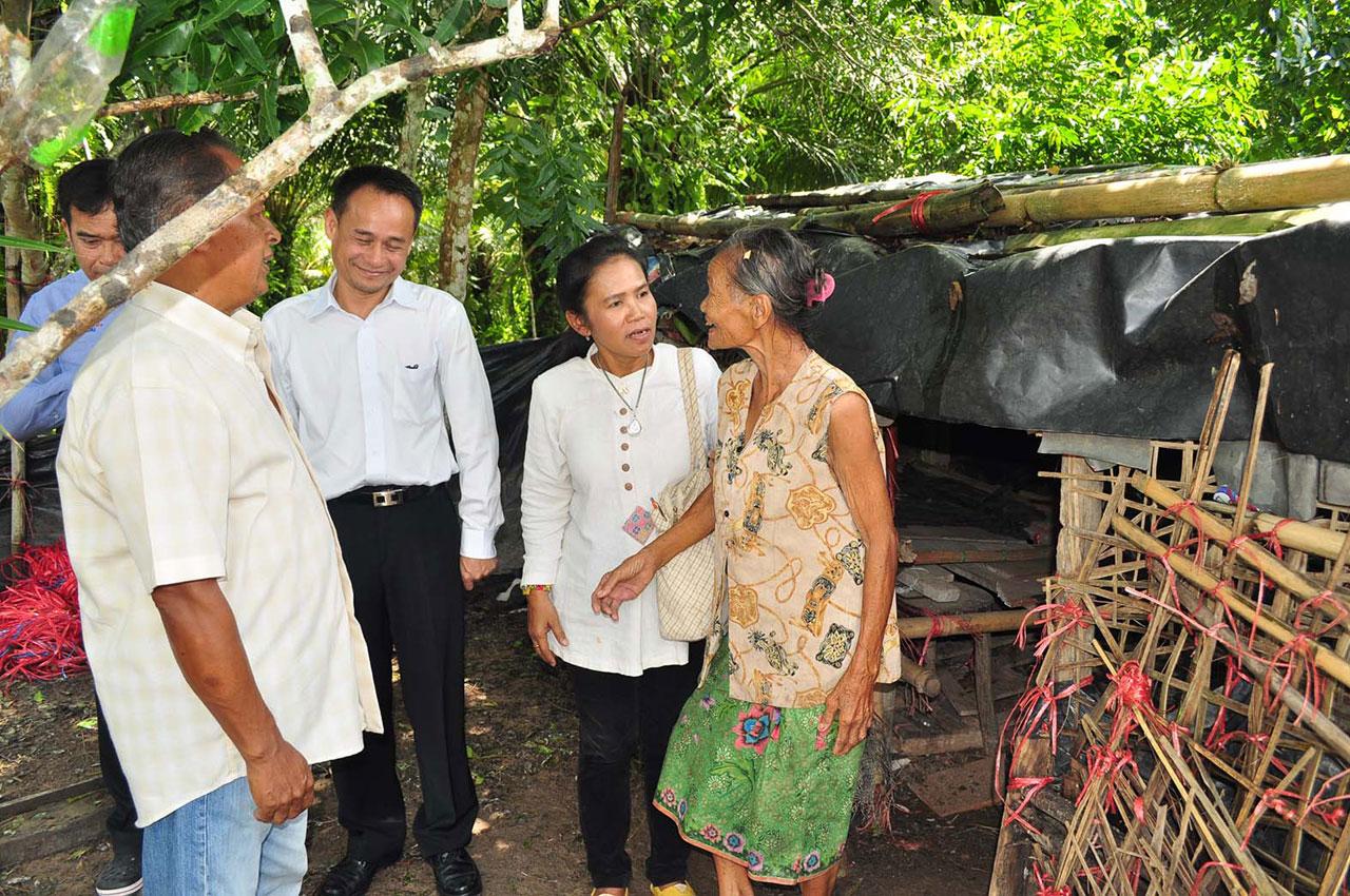 วันที่ 16 ต.ค. 58 จากกรณีที่ จ.ส.ต.วิชิต กัลยาณวัตร พัฒนาการอำเภอทุ่งตะโก และ นายสำเริง หีตชะนา กำนันตำบลตะโก อ.ทุ่งตะโก จ.ชุมพร นำผู้สื่อข่าวลงพื้นที่หมู่ 4 ตำบลตะโก อ.ทุ่งตะโก พบคุณยายเตียง ปริสารัตน์ อายุ 85 ปี อยู่ตัวคนเดียว หลังจากสามีเสียชีวิตก็อยู่กับลูกชาย ต่อมาลูกชายมีครอบครัวจึงมาขออาศัยอยู่ขนำหลังบ้านของ นายโกศล ณ พัทลุง ผู้ใจบุญ โดยปลูกผักและเลี้ยงไก่ขายเพื่อยังชีพ ต่อมา ขนำที่พักอาศัยอยู่ เกิดเพลิงไหม้ ทำให้ไม่มีที่นอน จึงอาศัยนอนที่เล้าไก่ จนนายสำเริง ทราบข่าวจึงร่วมกับชาวบ้านระดมเงิน และออกแรงสร้างห้องพักเล็กๆ เพื่อบังแดดฝนให้