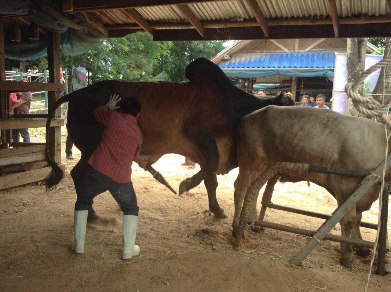 สำหรับการรีดน้ำเชื้อจากพ่อพันธุ์ ฮินดูบราซิล ชื่อว่าจ้าวรักษ์อุบล ขวัญใจคนจนภาค 2 ครั้งนี้ ถือเป็นวัวพ่อพันธุ์ที่ดีที่สุดในขณะนี้ ด้วยวิธีการใช้ตัวผู้เป็นตัวล่อ และ ใช้ช่องคลอดเทียม หรือ อวัยวะเพศเมียเทียม สำหรับเก็บน้ำเชื้อ โดยการพาพ่อพันธุ์เดินวน แล้วจูงเข้ามาหาตัวล่อ ให้ปีนขึ้นขี่ตัวล่อประมาณ 2-3 ครั้ง เพื่อเป็นการกระตุ้นอารมณ์ให้ช่วยเพิ่มปริมาตรน้ำเชื้อและจำนวนตัวอสุจิ ให้มากยิ่งขึ้น เมื่อพ่อพันธุ์พร้อมที่จะทำการผสมพันธุ์ สัตวแพทย์จะใช้ช่องคลอดเทียมสวมใส่ อวัยวะเพศพ่อพันธุ์ เพื่อรองรับน้ำเชื้อ ทั้งนี้ การรีดน้ำเชื้อด้วยวิธีการใช้ช่องคลอดเทียมนั้น เป็นวิธีการที่ดีที่สุดในการเก็บน้ำเชื้อ