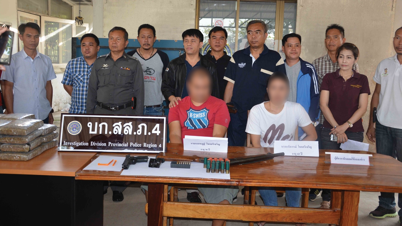 เมื่อเวลา 10.00 น. วันที่ 19 ต.ค. 58 พ.ต.อ.ณัฐนนท์ ประชุม ผกก.สส.1 บก.สส.ภ.4 พ.ต.ท.กิตติพงษ์ จิตรคาม รอง ผกก.สส 1 บก.สส.ภ.4 ร่วมกันแถลงข่าวจับกุม นายเอกเชฎฐ์ โชคศิริเจริญ หรือ เสี่ยปั๊ก อายุ 36 ปี และนางนภัสภรณ์ โชคศิริเจริญ อายุ 41 ปี ภรรยา อยู่บ้านเลขที่ 179 หมู่ 6 ต.หนองหญ้าไซ อ.วังสามหมอ จ.อุดรธานี ตามหมายจับศาลจังหวัดอุดรธานี พร้อมยาบ้า 41 เม็ด กัญชาแห้งอัดแท่ง 39 กก. ปืนลูกซองยาว 1 กระบอก พร้อมกระสุนลูกซองเบอร์ 12 จำนวน 20 นัด ปืนพกสั้น 9 มม. 1 กระบอก พร้อมกระสุน 26 นัด โทรศัพท์มือถือ 1 เครื่อง เงินสดและทองรูปพรรณ รวมมูลค่า 800,000 บาท โดยจับกุมได้เมื่อเย็นวันที่ 18 ต.ค. ที่บ้านเช่าภายในหมู่บ้านริมบึงธานี เขตเทศบาลนครขอนแก่น