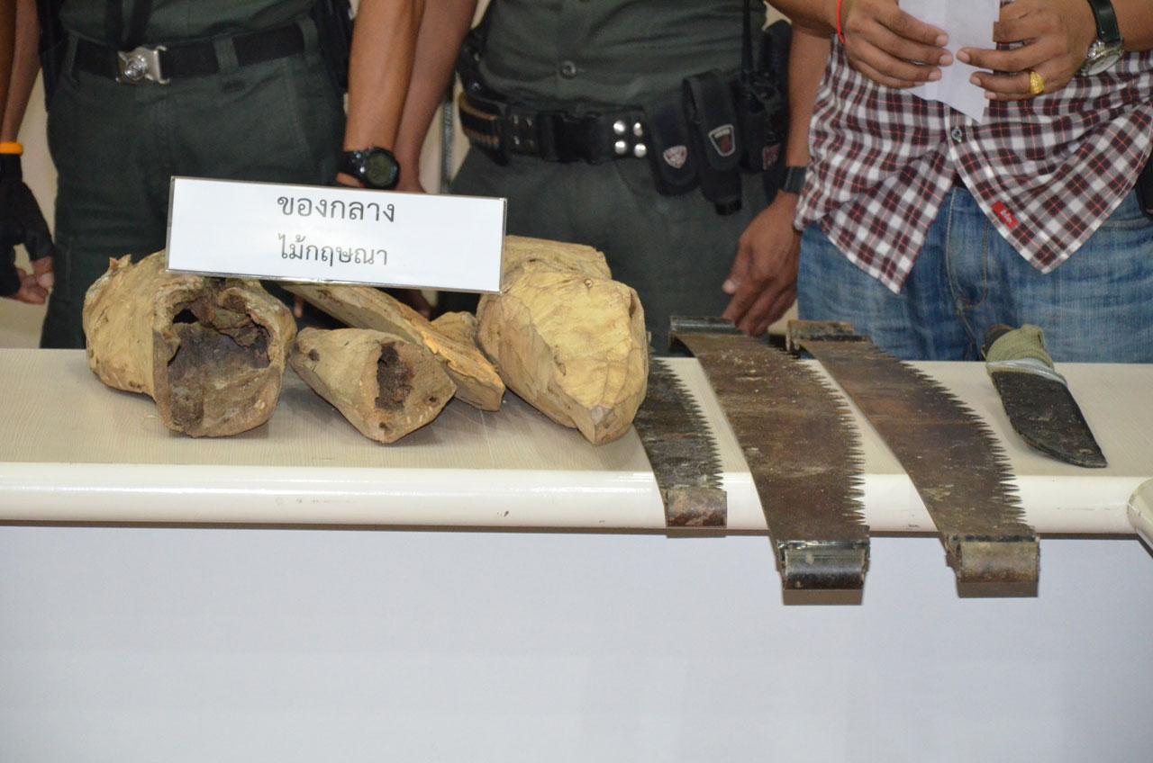 เมื่อเวลา 14.30 น. วันที่ 19 ต.ค. ที่ห้องประชุมสารสินตำรวจภูธรภาค 3 พล.ต.ท.ทวิชาติ พละศักดิ์ ผบช.ภ.3 พร้อมด้วย พล.ต.ต.ธเนษฐ สุนทรสุข รอง ผบช.ภ.3 พล.ต.ต.สุวรรณ เอกโพธิ์ รอง ผบช.ภ.3 พล.ต.ต.วิสาร์ท สมปราชญ์ ผบก.ภ.จ.ชัยภูมิ พ.ต.อ.ประสงค์ เรืองเดช รอง ผบก.สส.ภ.3 พ.ต.อ.ธรรมนูญ ฉิมวงษ์ ผกก.สส.2 บก.สส.ภ.3 พ.ต.ท.นิรันดร์ แก้วอิน รอง ผกก.สส.2 พล.ต.พุฒเศาษฐ์ ภาคการ ผบ.กกล.รส.ชย.นายยุทธชัย ปัทมสนธิ ผอ.สำนักงบริหารพื้นที่อนุรักษ์ที่ 7 นครราชสีมา ร่วมกันแถลงผลการจับกุม นายอาทิตย์ คลังสิน อายุ 31 ปี อยู่บ้านเลขที่ 11 หมู่ 5 ต.ช้างตะลูด อ.หล่มสัก จ.เพชรบูรณ์ และ นายสอง คลังสิน อายุ 38 ปี อยู่บ้านเลขที่ 3 หมู่ 5 ต.ช้างตะลูด อ.หล่มสัก จ.เพชรบูรณ์ สองผู้ต้องหาที่ร่วมกันเข้าไปลักลอบตัดไม้หอม และหาของป่า จนเกิดการปะทะกับเจ้าหน้าที่เขตรักษาพันธุ์สัตว์ป่าภูเขียว (ทุ่งกะมัง) จ.ชัยภูมิ บริเวณบ้านห้วยระหงส์ ก่อนที่ นายบุญเล็ง ใช้อาวุธปืนลูกซองยาวยิงใส่เจ้าหน้าที่ ทำให้ นายประสิทธิ์ คุ้มหมู่ อายุ 49 ปี หัวหน้าชุดพิทักษ์ป่า เสียชีวิต พร้อมของกลางหลายรายการประกอบด้วย ไม้หอม 3 ท่อน เลื่อยมือ และโทรศัพท์มือถือ 1 เครื่อง
