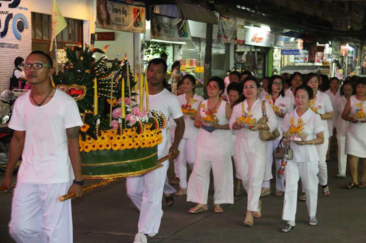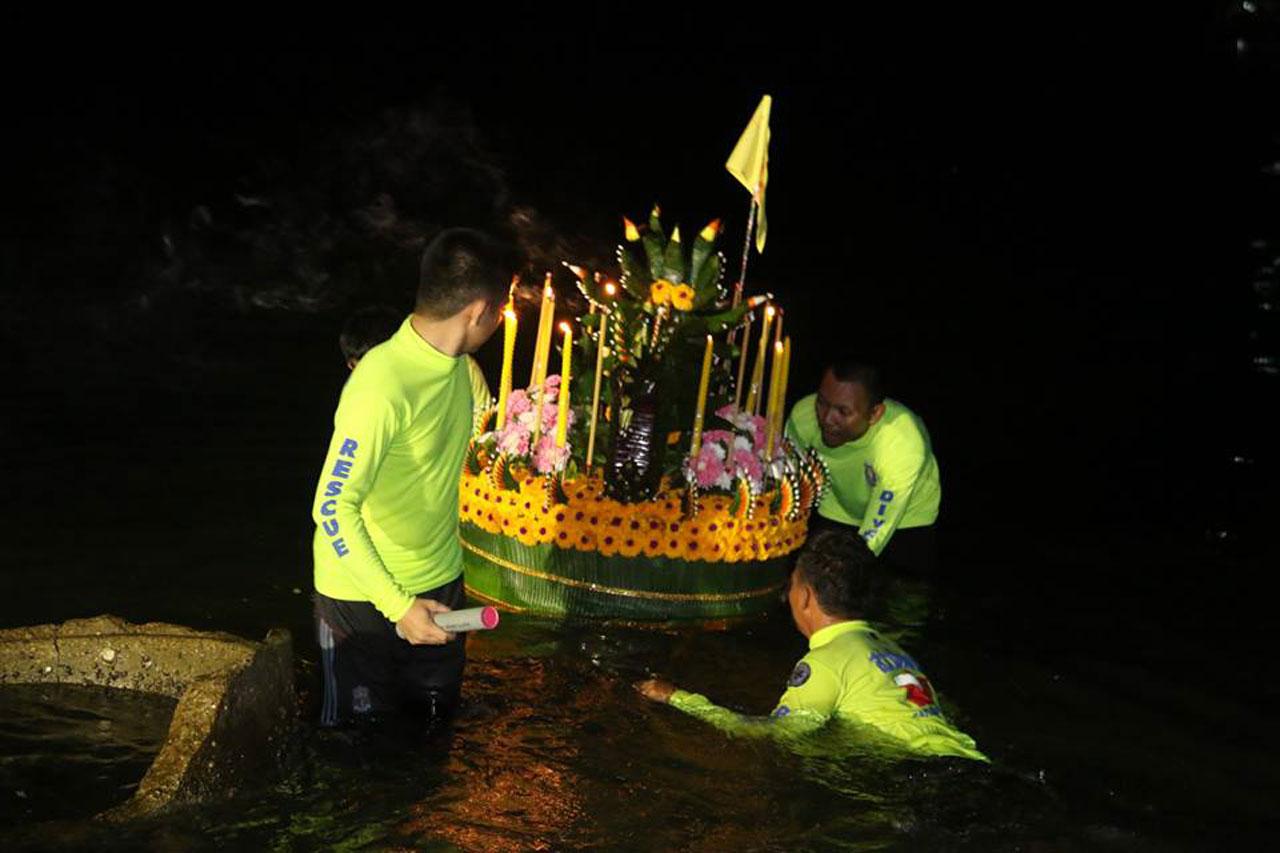 นายกเล็กเมืองสัตหีบ ร่วมผู้ถือศีลกินเจกว่า 300 คน นุ่งขาวห่มขาว "ลอยกระทงเจ" ทะเลหน้ากรมที่ดิน ถวายเป็นพุทธบูชา ขอพร 9 เทพเจ้า พร้อมขอขมาพระแม่คงคา เชิญวิญญาณเร่ร่อนรับเครื่องเซ่นไหว้