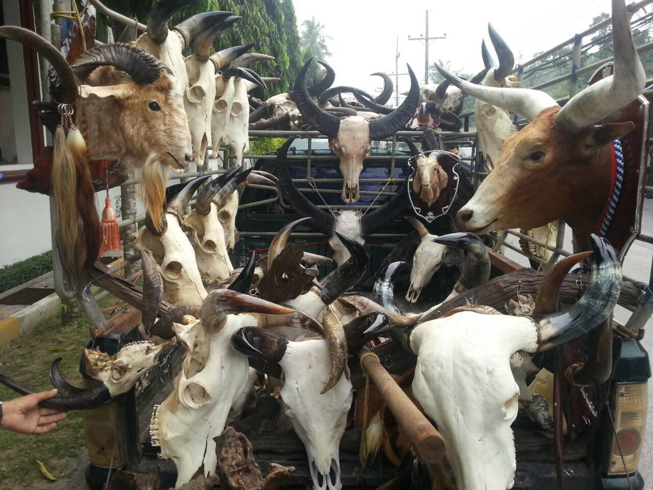 ประกอบด้วย หัวซากกระทิงป่า ซากหัววัวแดง ซากหัวควายป่าและควายบ้าน นับได้จำนวน 50 หัว มูลค่าหลายแสนบาท โดยคนขับซึ่งเป็นเจ้าของรถยนต์กระบะ และเจ้าของซากสัตว์ป่าดังกล่าว ไหวตัวทันทิ้งรถหลบหนีไปหวุดหวิด ซึ่งเจ้าหน้าที่ได้สอบสวนต่อมา ทราบชื่อ นายเมธาสิทธิ์ ปรางค์ปราสาท อายุ 39 ปี อยู่บ้านเลขที่ 39/4 หมู่ 6 ต.กมลา อ.กะทู้ จ.ภูเก็ต ซึ่งจะได้ติดตามจับกุมตัวมาดำเนินคดีตามกฎหมายต่อไป