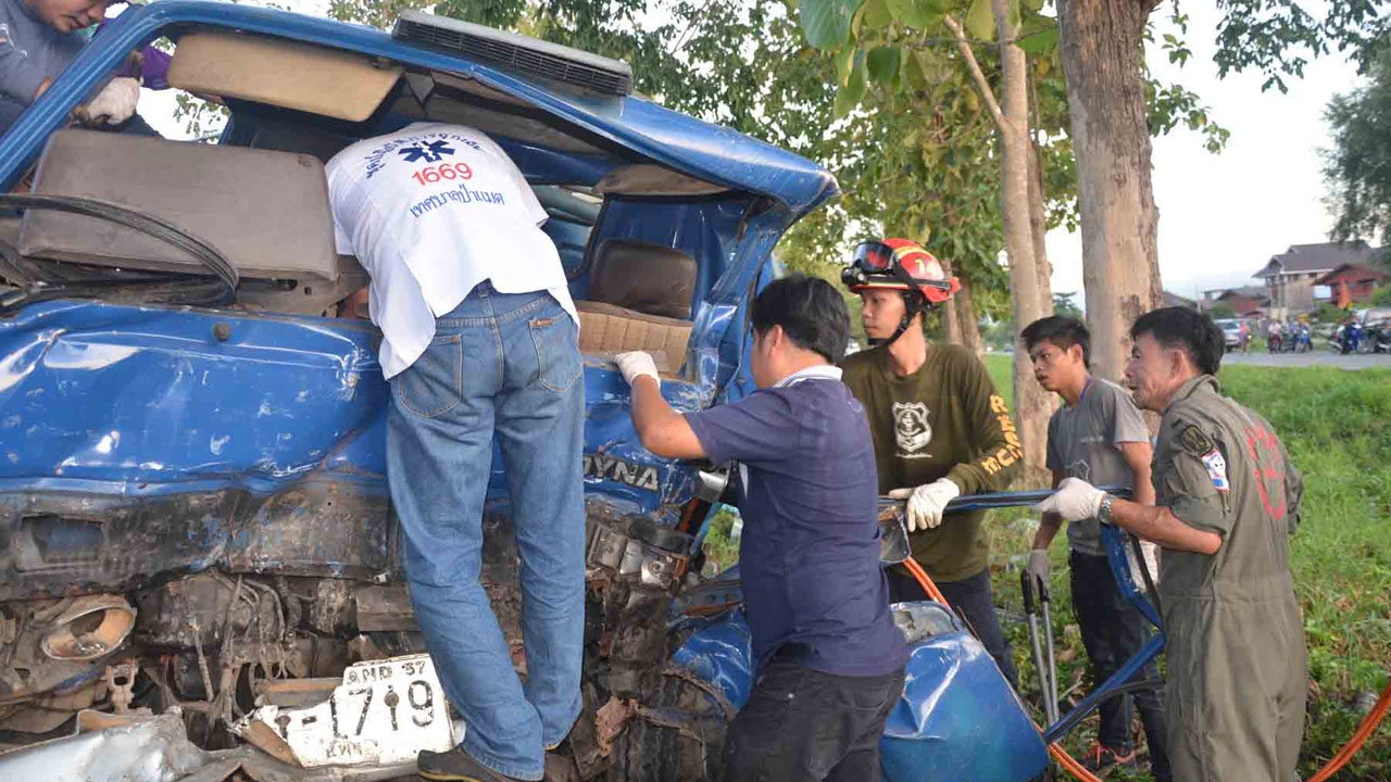 ที่เกิดเหตุพบรถบรรทุกสีขาว หมายเลขทะเบียน 70-5552 เชียงใหม่ มีนายวรสุนทร สมบัติ อายุ 36 ปี ชาวบ้าน หมู่ 2 ต.บ้านโฮ้ง อ.เมือง จ.แพร่ เป็นคนขับ ได้รับบาดเจ็บเล็กน้อย จอดขวางเต็มถนน ส่วนคู่กรณีเป็นรถยนต์สูบสิ่งปฏิกูล หรือรถดูดส้วม ยี่ห้อโตโยต้า หมายเลขทะเบียน 81-1719 แพร่ มีผู้เสียชีวิต ทราบชื่อต่อมา คือ นายนพดล อุดคำมี อยู่บ้านเลขที่ 75 หมู่ 3 ต.แม่คำมี อ.เมืองแพร่ถูกอัดก๊อปปี้ติดอยู่หน้ารถ เจ้าหน้าที่กู้ภัยได้ใช้เครื่องตัดถ่าง งัดเอาศพออกมา