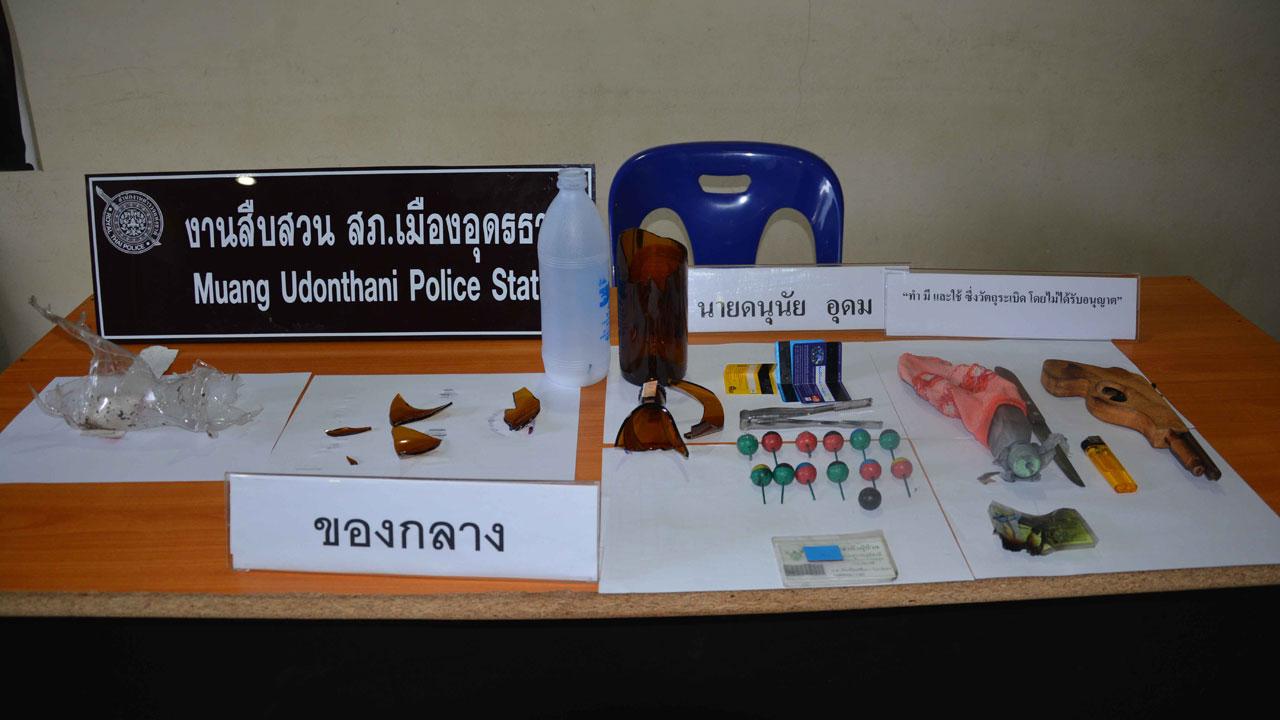 เมื่อเวลา 09.00 น. วันที่ 22 ตุลาคม ร.ต.อ.สมัย ชัยบัวลา พงส.สภ.เมืองอุดรธานี ได้รับแจ้งเหตุปาระเบิดใส่หน้าร้าน 285 บิวตี้ช็อป หน้า ขบส.แห่งที่ 1 ถนนสุรการ เขตเทศบาลนครอุดรธานี จึงพร้อมด้วย พ.ต.ต.ศัลย์ พินิจวัฒนา ร.ต.อ.อรรคพงษ์ ยี่เกาะ รอง สว.สส.สภ.เมือง อุดรธานี พ.ต.ประจันบาน ทองศรี ผบ.ชุดประสานงาน ประจำพื้นที่ มทบ.24 นำกำลังตำรวจและทหารออกไปตรวจสอบ