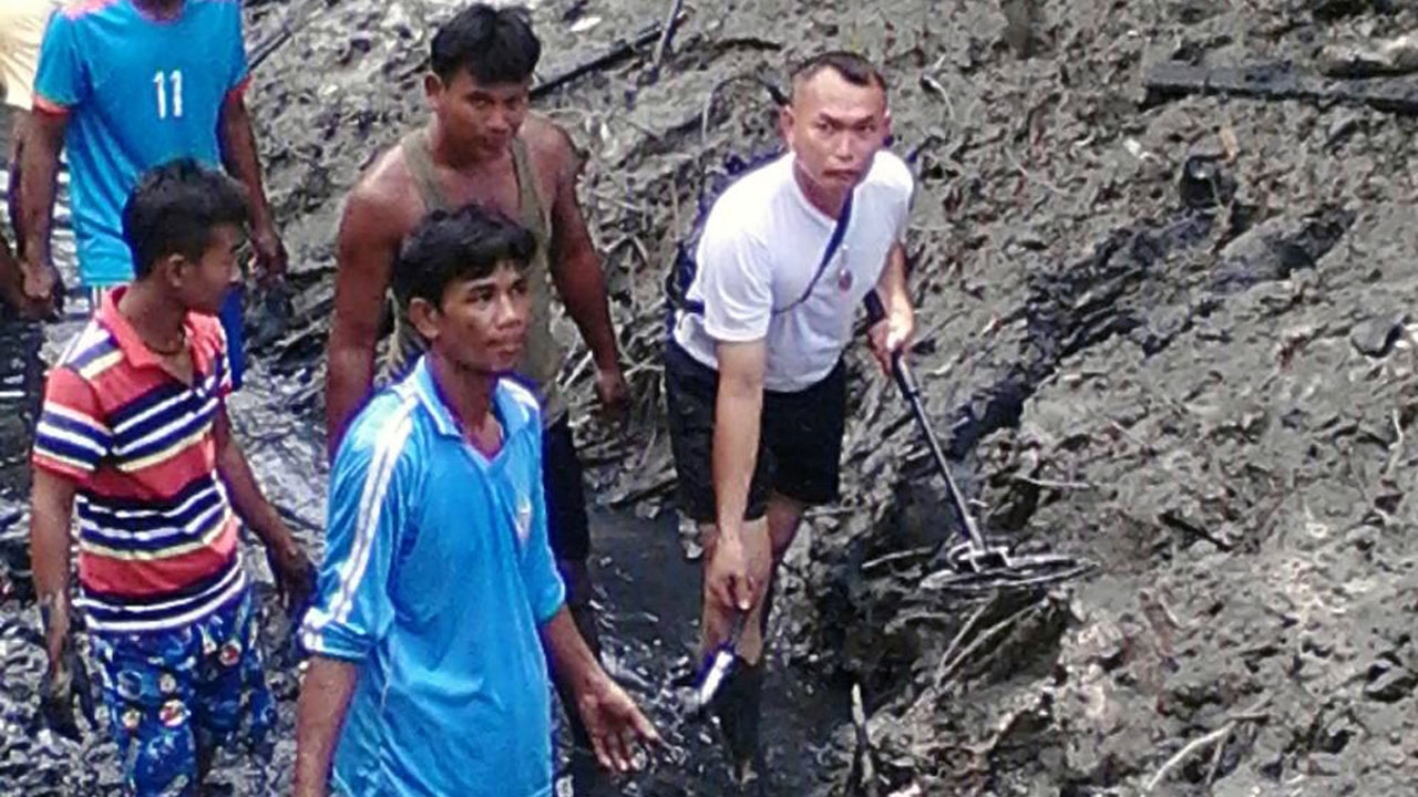 ตำรวจระนองร่วมกับชาวบ้าน ร่วมปูพรมลุยคลองหลังน้ำลด ค้นหามีดที่ใช้ก่อเหตุแทง น้องแอปเปิ้ล เสียชีวิต ผ่านไปกว่า 4 ชม. พบมีดต้องสงสัย คล้ายมีดทำครัวหรือมีดทำอวน พร้อมควบคุมตัวผู้ต้องสงสัยกลับไปสอบสวนต่อยัง สภ.ระนอง