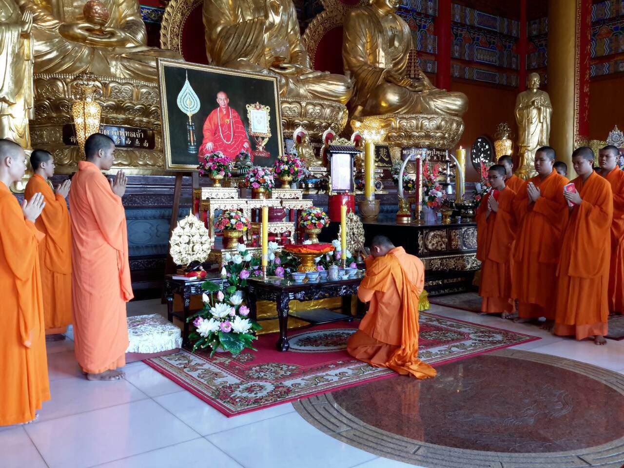 เมื่อวันที่ 25 ต.ค.2558 บรรยากาศที่วัดเล่งเน่ยยี่ 2 หรือ วัดบรมราชากาญจนาภิเษกอนุสรณ์ อยู่ที่ ถ. บางกรวย-ไทรน้อย ม.5 ต.โสนลอย อ.บางบัวทอง จ.นนทบุรี ได้มีประชาชนจำนวนมากและลูกศิษย์ลูกหาต่างทยอยเดินทางมาไหว้พระและกราบไหว้ รูปภาพท่านพระคณาจารย์จีนธรรมปัญญาจริยาภรณ์ (เย็นเชี้ยว) เจ้าอาวาสซึ่งทางเจ้าหน้าที่วัด ได้นำมาจัดตั้งไว้ให้ประชาชนทั่วไปได้เข้ากราบไหว้และประชาชนส่วนใหญ่ได้ พร้อมใจกันสวมใส่มาในชุดสีขาวและสีดำเพื่อเป็นการไว้อาลัยให้ท่าน พร้อมกับได้มีเจ้าหน้าที่นำผ้าแพรสีเหลือง ขาว ดำ ขึ้นผูกภู่ติดที่ด้านหน้านอกกำแพงวัดตลอดแนว เพื่อไว้อาลัยให้ท่านเจ้าอาวาสของวัดเล่งเน่ยยี่ที่มรณภาพลงอย่างสงบ และทางคณะสงฆ์ของวัดได้มีการสวดบท "สุขาวดีสูตร"คือการส่งดวงวิญญาณให้ท่านเจ้าอาวาสไปสู่สุขติตามความเชื่อของ ธรรมนิกายมหาญาณ เมื่อได้ละสังขารไปแล้วก็จะไปจุติในดินแดนสุขาวดี โดยมีความเชื่อว่าผู้ที่รักษาศีลภาวนาจะได้รับความเมตตาจากองค์สัมมาสัมพุทธ เจ้าทรงเมตตาให้รุดพ้นจากการเวียนว่าย ตาย เกิด ซึ่งเป็นดินแดนที่จะหลุดพ้นไม่กลับมาเวียน ว่ายตายเกิดอีก