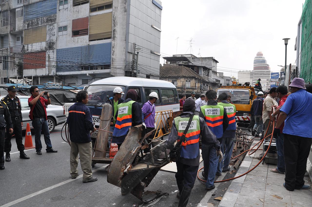 (ตอบ) ฝ่ายกรุงเทพมหานครชี้แจงโดยผู้การแต้ม กล่าวว่า ตั้งแต่ปี 2543 เป็นต้นมา ได้มีจดหมายไปถึงกลุ่มผู้ค้าสะพานเหล็กให้รื้อถอนสิ่งปลูกสร้างต่างๆ ออกไป แต่การที่เจ้าหน้าที่ปล่อยปละละเลยไม่บังคับใช้กฎหมายอย่างเคร่งครัด เพราะมีการเอื้อประโยชน์ต่อกัน อีกทั้งผู้ว่าฯ แต่ละคนที่ผ่านมา ก็มีนโยบายที่ไม่เหมือนกัน ตัวอย่างเช่นในสมัยท่านสมัคร สุนทรเวช ท่านจะเอาใจผู้ค้าหาบเร่แผงลอยเป็นพิเศษ ในยุคนั้นเทศกิจคนไหนไปจับพ่อค้าแม่ค้า มีสิทธิโดนเด้งได้ง่ายๆ ยุคนั้นจึงเป็นยุคที่หาบเร่แผงลอยไร้ระเบียบมากที่สุด แต่ในสมัยของผู้ว่าฯ กทม. คนปัจจุบัน ได้เอาจริงเอาจังกับการปรับปรุงภูมิทัศน์ของ กทม. เพื่อให้เกิดความเป็นระเบียบเรียบร้อย และเกิดประโยชน์ต่อสาธารณะมากที่สุด