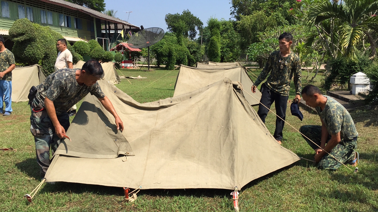 เมื่อเวลา 11.30 น. วันที่ 26 ต.ค. 58 ที่บริเวณสนามภายในกองร้อยอาสารักษาดินแดน จังหวัดหนองคาย เจ้าหน้าที่ อส. ได้ช่วยกันกางเต็นท์ และจัดเตรียมที่พักไว้บริการนักท่องเที่ยวในช่วงเทศกาลออกพรรษาบั้งไฟพญานาค ทุกปีจะมีนักท่องเที่ยวที่ไม่มีที่พักเข้ามาใช้บริการในวันที่เกิดปรากฏการณ์บั้งไฟพญานาค ซึ่งในปีนี้ตรงกับวันที่ 27 ตุลาคม 2558 จากสถิติของปี 2557 ที่ผ่านมา มีผู้เข้ามาใช้บริการจำนวน 47 ครอบครัว สำหรับปีนี้ได้มีการจัดเต็นท์ไว้ทั้งหมด 100 เต็นท์ กางเตรียมพร้อมไว้ 10 เต็นท์ ผู้ที่มีเต้นท์มาเองก็จะจัดเตรียมพื้นที่ไว้ให้