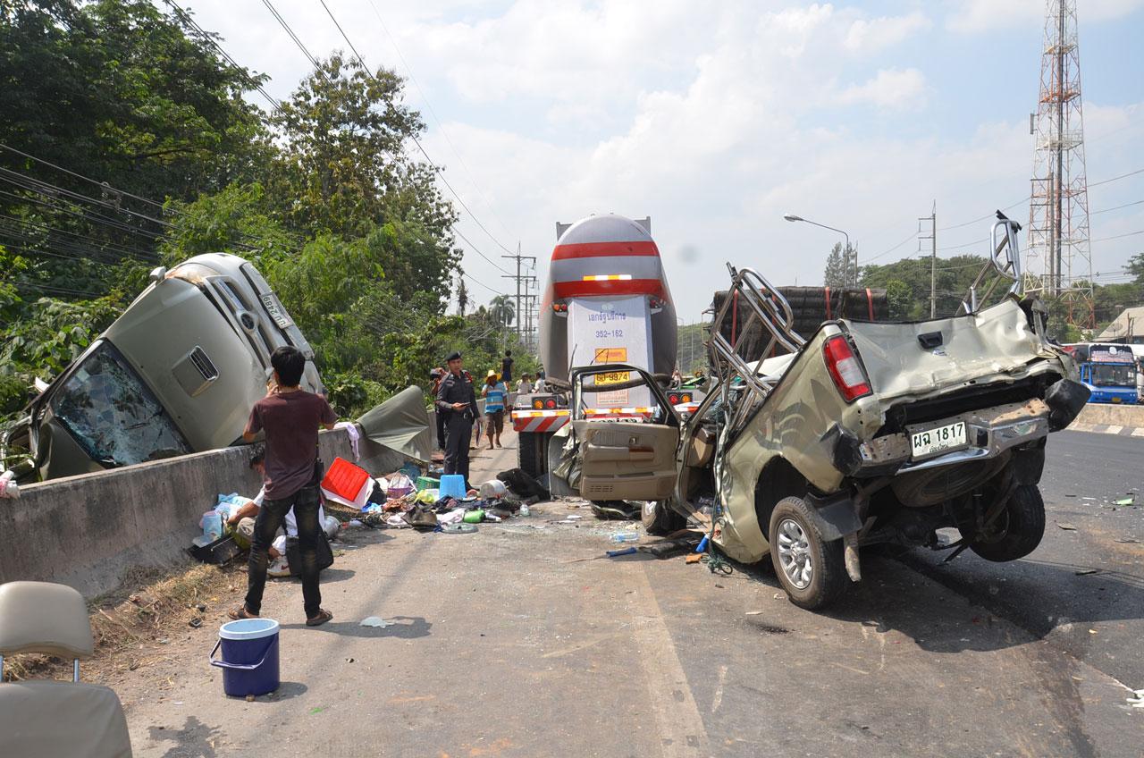 ด้าน นายนพพร พรหมขัดติแก้ว อายุ 52 ปี คนขับรถกระบะ ทะเบียน ผฉ1817 เชียงใหม่ เผยว่า พร้อมด้วยญาติขับรถมาจาก จ.นครราชสีมา เพื่อทำบุญ และกำลังจะกลับบ้านที่ จ.เชียงใหม่ ระหว่างขับมาถึงที่เกิดเหตุพบว่าด้านหน้ามีรถติด จากนั้น จู่ๆ ถูกรถเทรลเลอร์พุ่งชนท้ายรถกระบะรวมถึงคันอื่นๆ จนมีผู้บาดเจ็บดังกล่าว