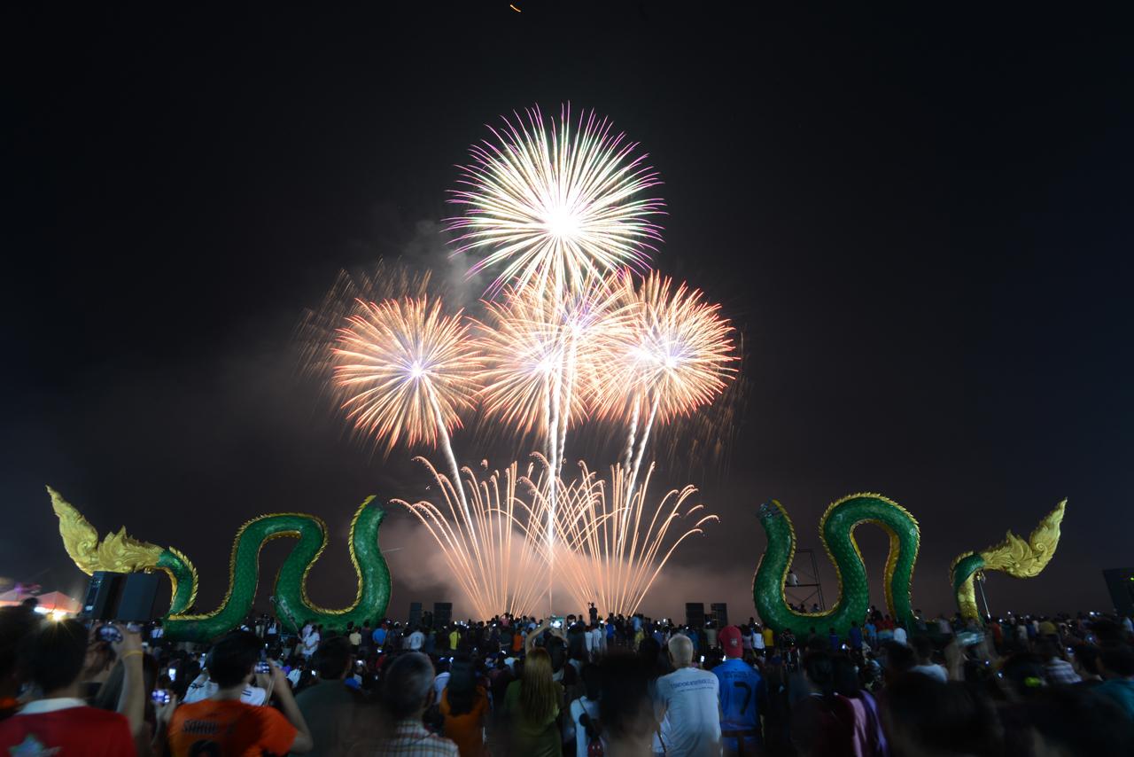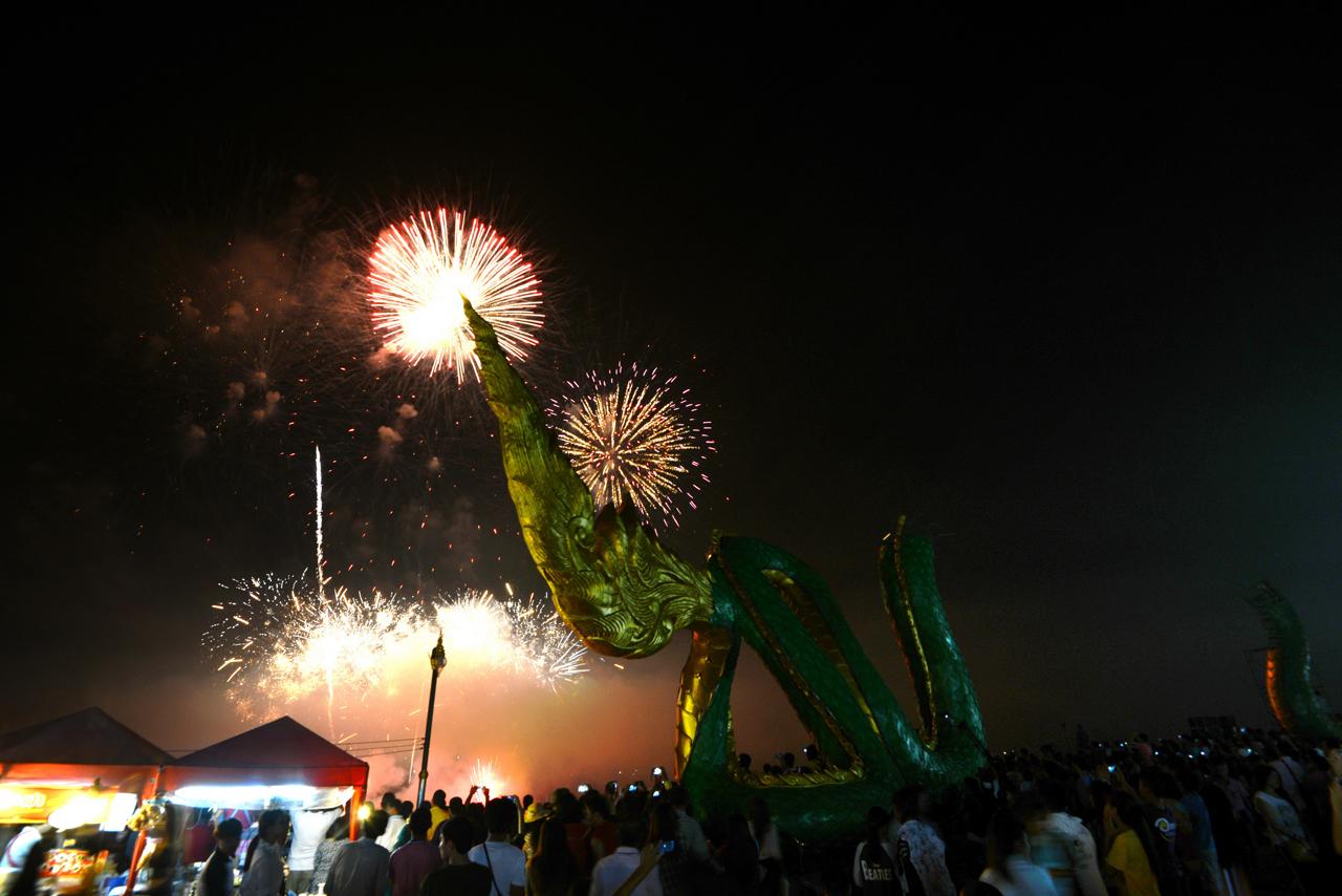 ทั้งนี้ การแสดงพลุ ได้แบ่งออกเป็น 3 องก์ ใช้เวลาการแสดงเกือบ 1 ชั่วโมง ประกอบด้วย องก์ที่ 1 กำเนิดพญานาค องก์ที่ 2 เมืองหนองคายนครแห่งนาคา และองก์ที่ 3 ถวายเป็นพระราชกุศลแด่องค์ในหลวง ซึ่งตลอดทั้ง 3 องก์ พลุดอกไม้ไฟหลากสีสัน ประกอบเพลง และแสงเลเซอร์ ทำให้ท้องฟ้าเหนือแม่น้ำโขงที่จังหวัดหนองคายสว่างไสว โดยมีนักท่องเที่ยวให้ความสนใจรอชมพลุในครั้งนี้เป็นจำนวนมาก