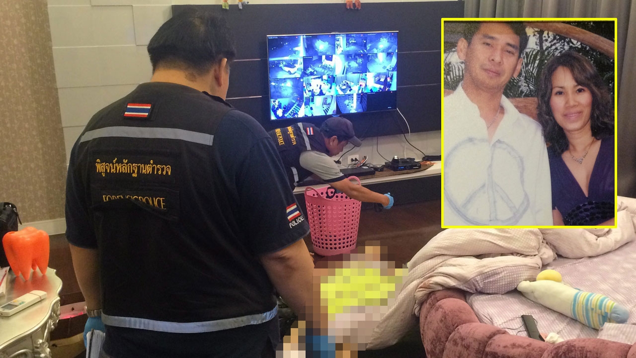 เจ้าหน้าที่ชันสูตรศพนางวลัยพร สิริจิรกาญจน์ ถูกนายสกฤษ์พล สิริจิรกาญจน์ (ภาพเล็ก) สามีเสี่ยธุรกิจอสังหาริมทรัพย์ ยิงดับคาห้องนอนบ้านเลขที่ 88/20 หมู่บ้านลดาวัลย์ ต.บางรักน้อย อ.เมืองนนทบุรี ปมเหตุเรื่องหึงหวง.