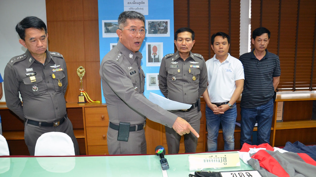 ต่อมาเวลา 14.30 น. วันเดียวกันที่ห้องประชุมชั้น 2 สภ.เมืองภูเก็ต พ.ต.อ.ธีระพล ทิพย์เจริญ รอง.ผบก.ภ.จว.ภูเก็ต ว่าที่ ผบก.ภ.จว.ภูเก็ต พ.ต.อ.พินิจ ศิริชัย พ.ต.อ.พีระยุทธ การะเจดีย์ รอง.ผบก.ภ.จว.ภูเก็ต รรท.ผกก.สภ.เมืองภูเก็ต พ.ต.ท.คุณเดช ณ หนองคาย รอง.ผกก.สส.พ.ต.ท.สมศักดิ์ ทองเกลี้ยง สว.สส.สภ.เมืองภูเก็ต แถลงผลการจับกุมในคดีดังกล่าว