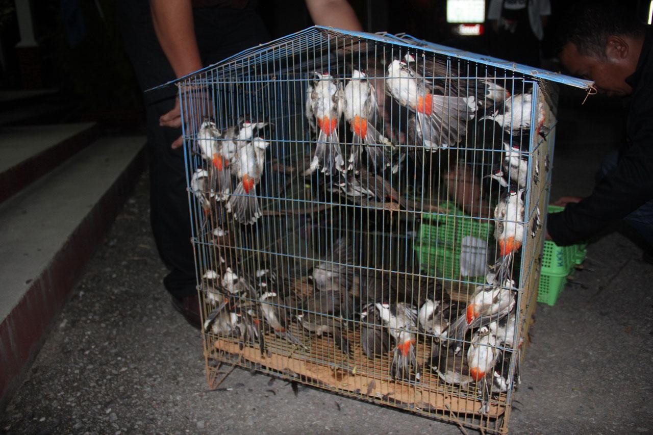 พบว่าบนรถมีนายวิรัช นวลแหนม อายุ 45 ปี ชาวบ้าน ต.บ้านโคน อ.พิชัย จ.อุตรดิตถ์ เป็นคนขับมือ 1 นายสุชิต สบหงิม อายุ 47 ปี ชาวบ้าน ต.บางพระ อ.เมือง จ.ฉะเชิงเทรา เป็นคนขับมือ 2 และนายอดิศักดิ์ เถายา อายุ 25 ปี ชาวบ้าน ต.สูงเนิน อ.กระสัง จ.บุรีรัมย์ เป็นพนักงานประจำรถ เจ้าหน้าที่ได้ให้นายวิรัช คนขับเปิดประตูกลางรถ เพื่อทำการตรวจค้น แต่นายวิรัชอ้างว่าไฮดรอลิกเสีย เปิดไม่ได้ ท่าทางมีพิรุธ น่าสงสัย เจ้าหน้าที่จึงเปิดประตูท้ายรถเข้าไปตรวจชั้นวางพัสดุภัณฑ์ พบตะกร้าพลาสติก 2 ใบครอบหากันมัดเชือกฟางทำเป็นลัง บรรจุนกปรอดหัวโขน หรือนกกรงหัวจุก ขนาดตัวโตเต็มวัยส่งเสียงร้องดังระงมลังละประมาณ 60 ตัว จำนวน 32 ลัง รวม 2,000 ตัวซุกซ่อนไว้ในชั้นวางพัสดุภัณฑ์โดยมีกระสอบของแห้งตั้งกองปิดด้านหน้าไว้เพื่อตบตาเจ้าหน้าที่ด่านตรวจ