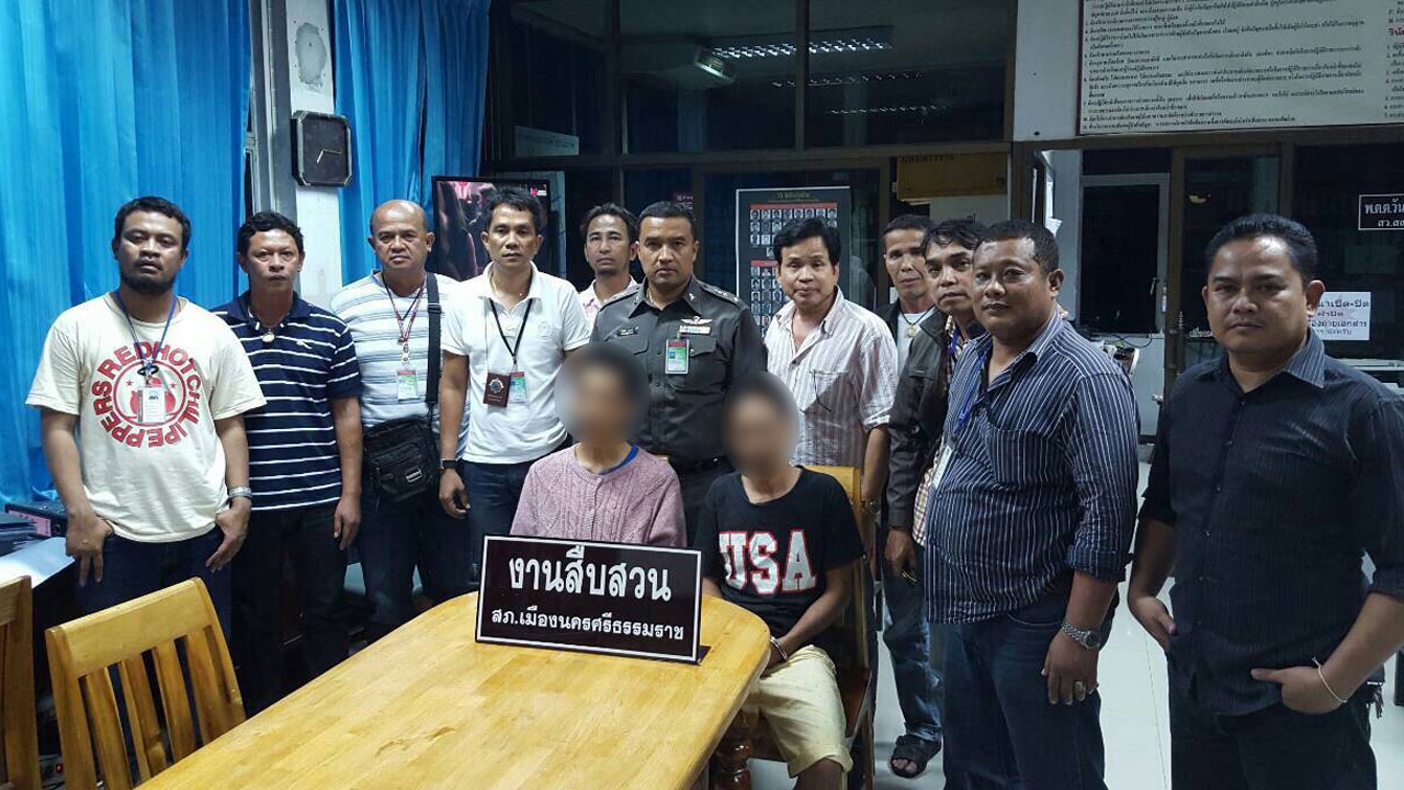 โดยหลังจาก ศาลจังหวัดนครศรีธรรมราช อนุมัติออกหมายจับผู้ต้องหาทั้ง 2 แล้ว พ.ต.ท.สุทัศน์ นำกำลังตำรวจชุดสืบสวน พร้อมหมายจับของศาลจังหวัดนครศรีธรรมราช เลขที่ 365/2558 และเลขที่ 366/2558 ลงวันที่ 27 ต.ค. 2558 เดินทางไปล้อมจับกุมผู้ต้องหาทั้งสองคนได้ที่บ้านพักเลขที่ 1535/26 ซอย 15 ชุมชุนหน้าสถานีรถไฟ ขณะกำลังมั่วเสพน้ำต้มพืชกระท่อม ก่อนคุมตัวมาทำการสอบสวนปากคำ ปรากฏว่า นายประวิทย์ และ นายเอกชัย ยังให้การปฏิเสธตลอดข้อกล่าวหา แต่ทางตำรวจมีหมายจับของศาล และมีพยานหลักฐานมัดตัวแน่นหนา ก่อนคุมตัวนำส่งดำเนินคดีตามกฎหมาย ในข้อหาร่วมกันฆ่า และพยายามฆ่าผู้อื่นโดยไตร่ตรองไว้ก่อน มีอาวุธปืนเครื่องกระสุนปืนไว้ในครอบครองโดยไม่รับอนุญาต พกพาอาวุธปืนเข้าไปในเมือง หมู่บ้าน หรือทางที่สาธารณะโดยเปิดเผย หรือโดยไม่มีเหตุอันควร.