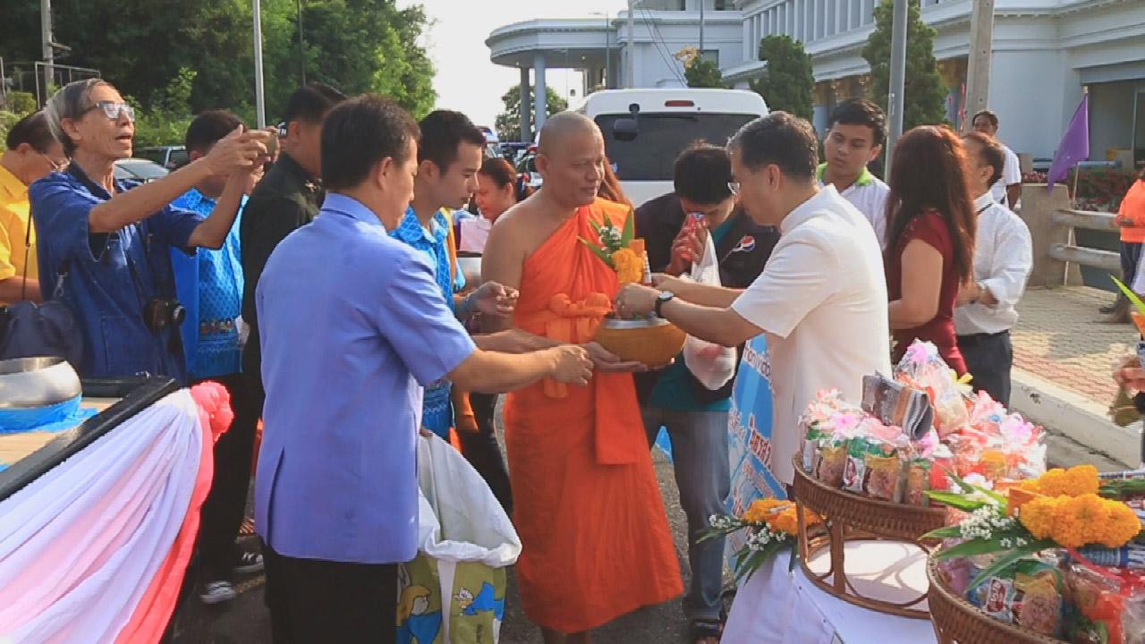 นายสมศักดิ์ จังตระกุล ผู้ว่าราชการจังหวัดอุบลราชธานี พร้อมด้วย พล.ต.อชิร์ฉัตร โรจนภิรมย์ ผู้บัญชาการมลฑลทหารบกที่ 22 นำพุทธศาสนิกชนชาวอุบลราชธานี ร่วมในพิธีทำบุญตักบาตรบริเวณท่าน้ำวัดหลวง ริมฝั่งแม่น้ำมูล อ.เมืองอุบลราชธานี จังหวัดอุบลราชธานี โดยมีพระภิกษุ สามเณร รับบิณฑบาตกว่า 100 รูป และประชาชนต่างพร้อมใจกันนุ่งซิ่น และชุดผ้าไทย