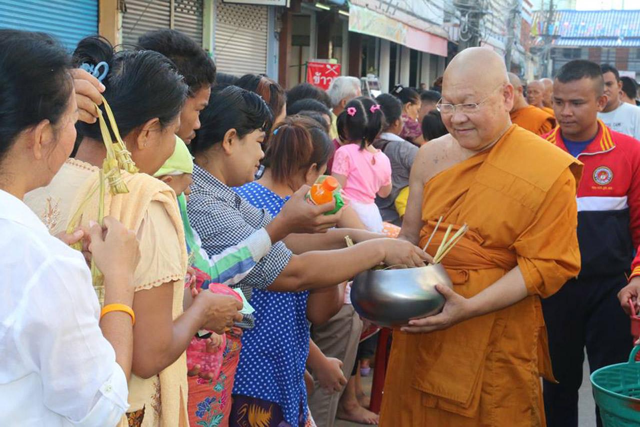 จ.ชลบุรี หน่วยงานภาครัฐ เอกชน ประชาชน ชาว อ.สัตหีบ ร่วมกันตักบาตรด้วยข้าวสาร อาหารแห้ง ข้าวต้มหาง น้ำดื่ม และส้มเขียวหวาน ณ วัดสัตหีบ โดยมี พระครูทัสนียคุนากร เจ้าคณะอำเภอสัตหีบ และเจ้าอาวาสวัดสัตหีบ นำขบวนสงฆ์และสามเณร 55 รูป ออกรับบิณฑบาตโดยรอบตลาดสัตหีบ โดยมีพุทธศาสนิกชนเดินทางมาร่วมทำบุญตักบาตรกันจำนวนมาก
