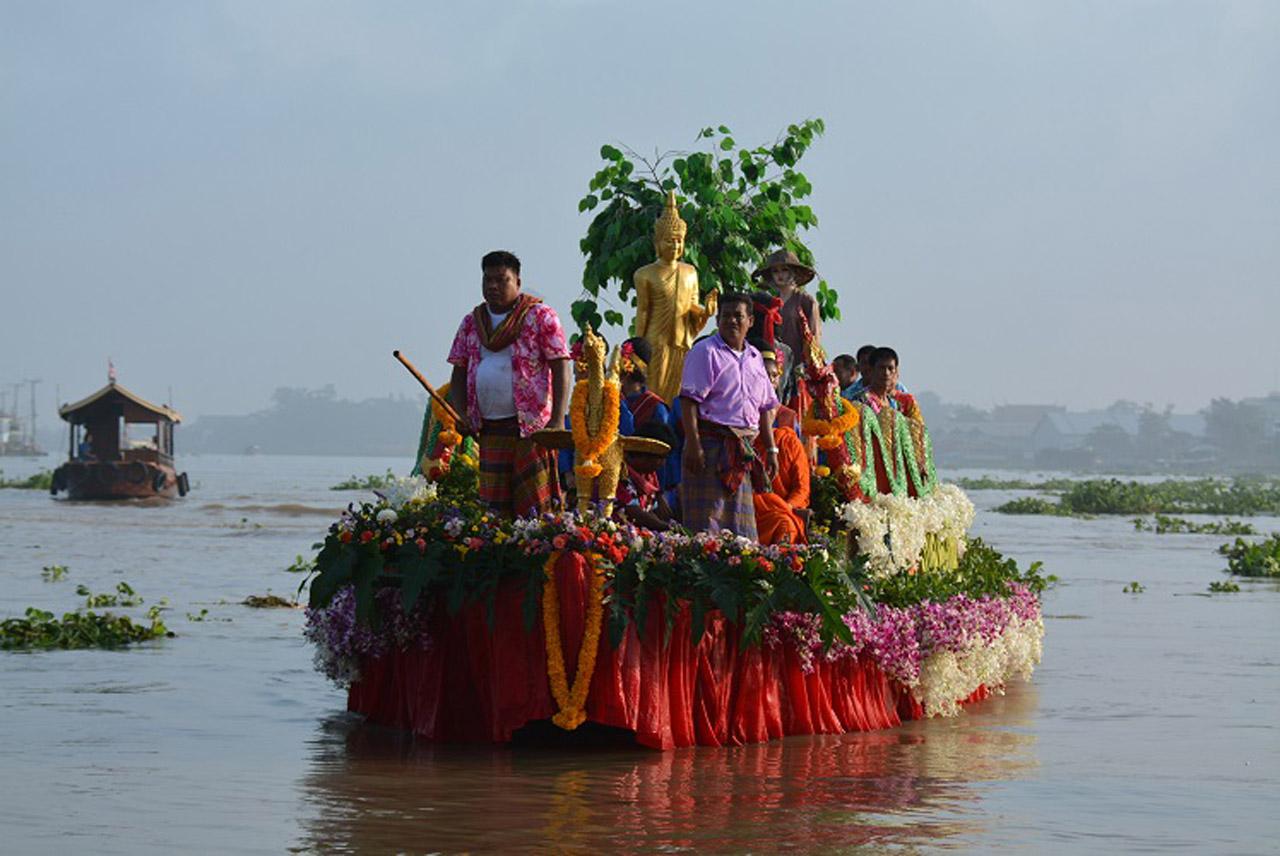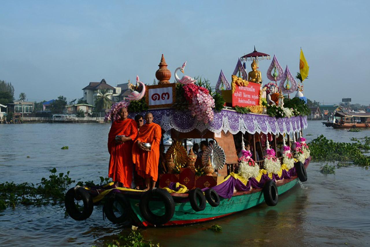สำหรับ อ.ปากเกร็ด จ.นนทบุรี มีการจัดงานตักบาตรพระสงฆ์ทางเรือ ที่ท่าน้ำปากเกร็ด มี นายนิสิต จันทร์สมวงศ์ ผู้ว่าราชการจังหวัดนนทบุรี ร่วมด้วย เพื่อสืบสานอนุรักษ์ประเพณีชาวไทย-มอญ ริมสองฝั่งแม่น้ำเจ้าพระยา และเจ้าหน้าที่ต้องจัดระเบียบในการตักบาตรที่บริเวณท่าน้ำ เพราะเกรงว่าถ้าลงไปจำนวนมากอาจเกิดอุบัติเหตุ โดยพระสงฆ์จะรับบิณฑบาตทางเรือ ตั้งริ้วขบวนล่องมาตามแม่น้ำเจ้าพระยา และสิ้นสุดบริเวณท่าน้ำปากเกร็ด ระยะทางกว่า 2 กม.