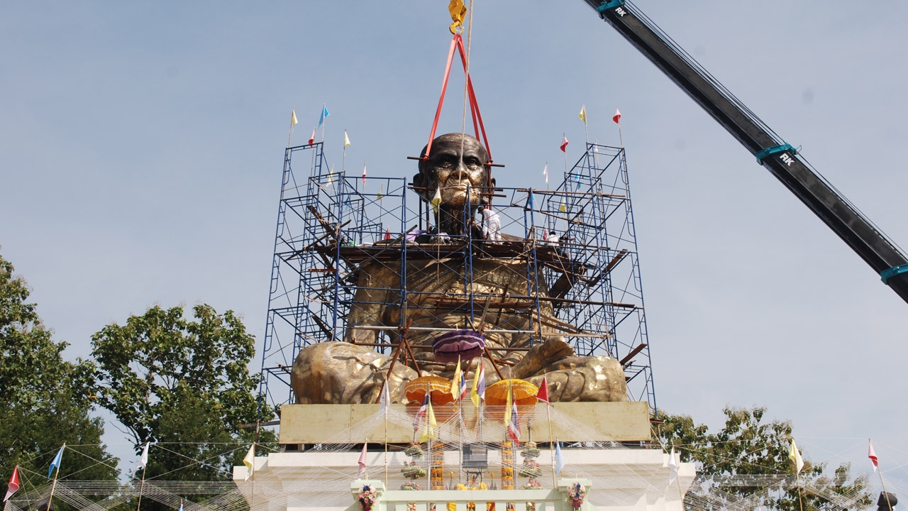 โดยได้เริ่มดำเนินการวางศิลาฤกษ์ เมื่อ 1 พฤษภาคม 2557 และได้เททององค์ปฐมฤกษ์ (ส่วนศีรษะ) ไปเมื่อวันที่ 8 มกราคม 2557 ซึ่งมีพุทธศาสนิกชนศิษยานุศิษย์ร่วมหมื่นคนมาร่วมในพิธี นับเป็นประวัติศาสตร์ของการจัดงานเททองของจังหวัดเพชรบูรณ์และจังหวัดใกล้เคียง การจัดสร้างเพื่อเป็นที่เคารพสักการบูชา เพื่อเป็นศูนย์รวมจิตใจของประชาชนชาวจังหวัดเพชรบูรณ์ และเพื่อการพัฒนาวัดพระพุทธบาทชนแดนให้เป็นแหล่งท่องเที่ยวเชิงศาสนาและวัฒนธรรมท้องถิ่นสืบต่อไป.
