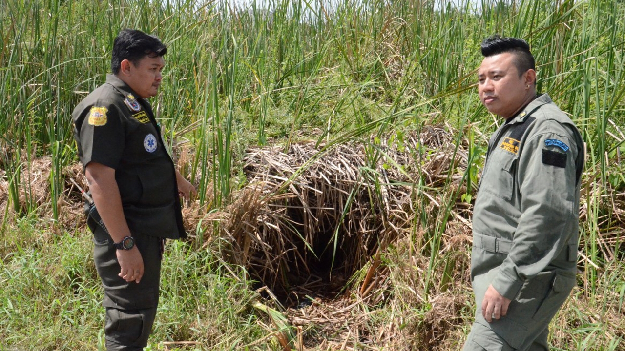ที่เกิดเหตุ พบคราบเลือดจำนวนมาก มีผู้เสียชีวิตเป็นชายไม่ทราบชื่อ นอนหงายอยู่ในน้ำ ที่มีพงหญ้าข้างทาง ใกล้กัน พบปลอกมีดพกโผล่พ้นน้ำมาเล็กน้อย ส่วนฝั่งตรงข้ามถนนเป็นป่าหญ้า พบมีดพร้ายาวประมาณ 1 ศอกตกอยู่ เจ้าหน้าที่จึงเก็บรวบรวมไว้เป็นหลักฐาน