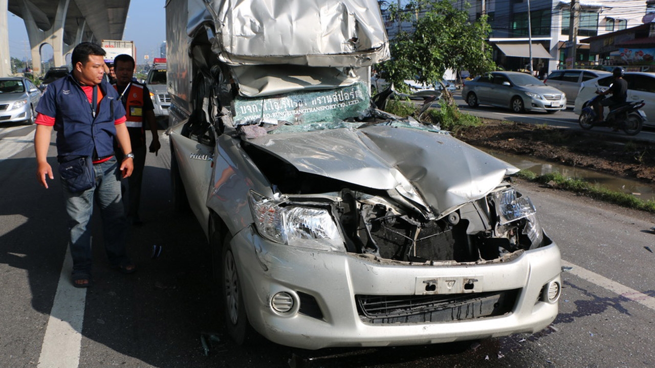 โจ๋19 ซิ่งกระบะไปรับสินค้า พุ่งชนท้ายรถบรรทุกไก่ดับคาที่ ขณะลูกเมียกลับจากดูศพผัวที่ รพ.เจอ 18 ล้อปาดหน้าเสียหลักชนแบริเออร์เกาะกลาง เคราะห์ดีไม่ได้รับบาดเจ็บ ด้านถนนอีกฟากหนุ่มใหญ่ถูกพ่วงตัดหน้าเก๋ง รถพลิกหงายท้อง เจ็บเล็กน้อย