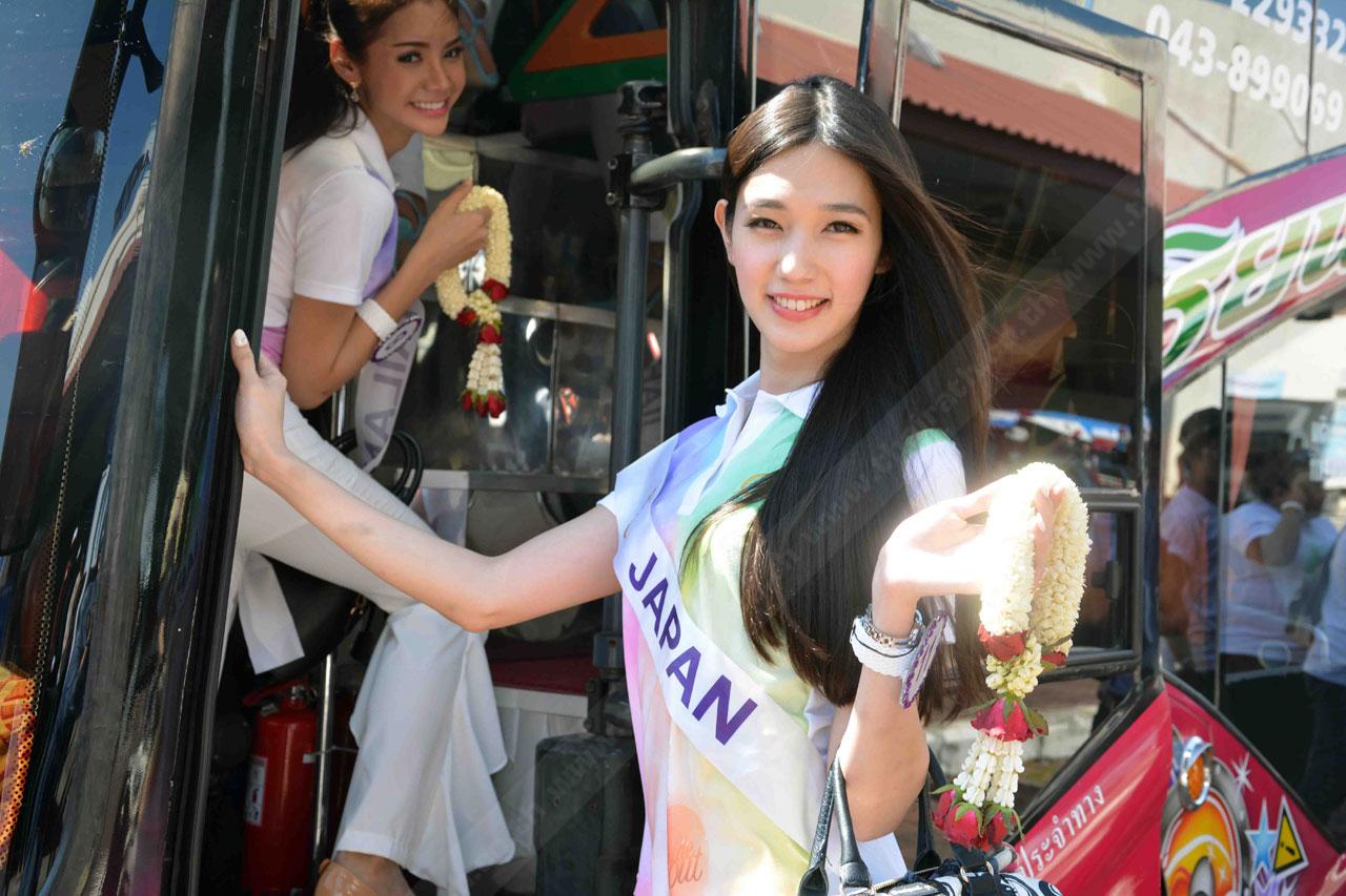 ด้าน ซาสึคิ อายุ 25 ปี พิธีการรายโทรทัศน์ดาวเทียมประเทศญี่ปุ่น ผู้เข้าประกวดจากประเทศญี่ปุ่น ที่มีความสวยและน่ารัก ได้ยกมือไหว้ได้อย่างสวยงาม ซึ่ง โสภิดา ศิริวัฒนานุกูล หรือน้องใบหม่อน ผู้เข้าประกวดตัวแทนจากประเทศไทย ที่เดินลงมาจากเครื่องบินเป็นคนสุดท้าย กล่าวว่า สนิทกับสาวงามจาก ญี่ปุ่น