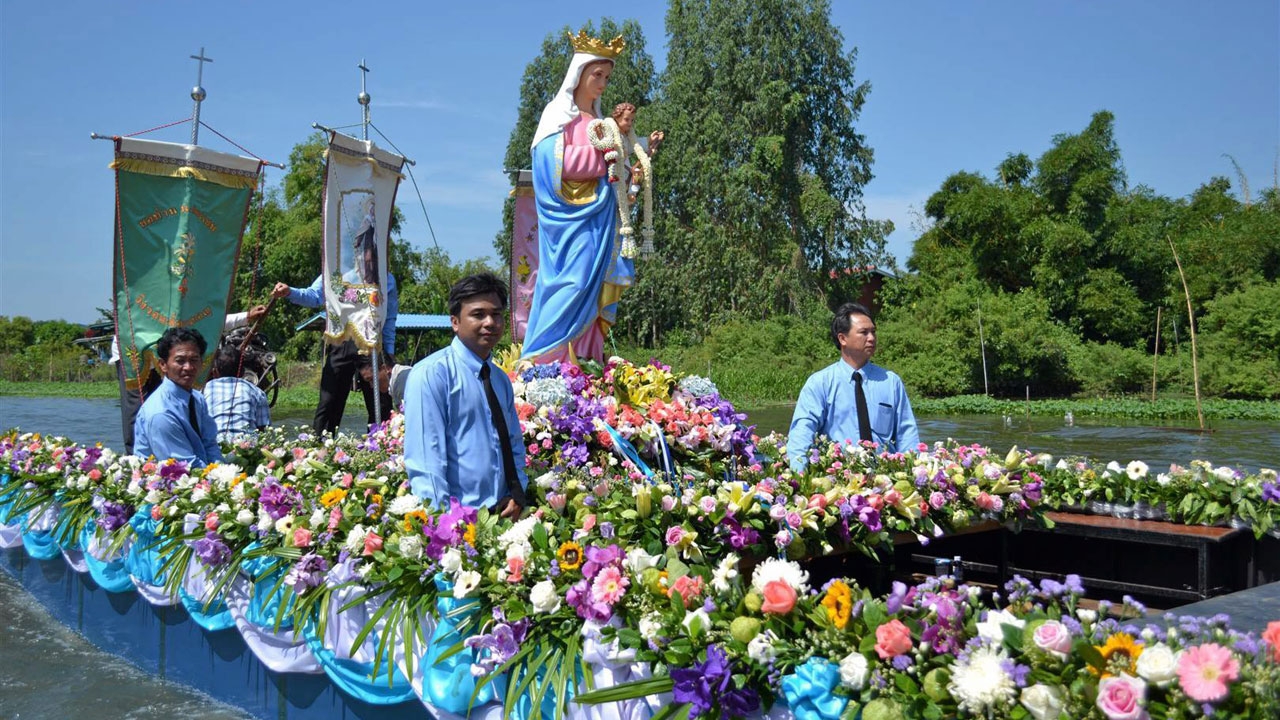 สำหรับประเพณีนี้ ได้สืบสานกันมาตั้งแต่โบราณแต่ได้หยุดไปกว่า 20 ปี เนื่องจากสภาพเศรษฐกิจที่ไม่เอื้ออำนวย จนกระทั่งทางนายภูวนารถ นายก อบต.ร่วมกับส่วนราชการ ผู้นำท้องถิ่น ได้ฟื้นฟูร่วมกับชาวไทยที่นับถือศาสนาคริสต์ และชาวไทยที่นับถือศาสนาพุทธใน อ.สองพี่น้อง จัดขึ้นด้วยการนำเรือชนิดต่างๆ กว่า 30 ลำ มาตกแต่งประดับประดาด้วยดอกไม้อย่างสวยงาม พร้อมทั้งอัญเชิญรูปปั้นพระแม่มารีและพระเยซู มาประดิษฐานบนเรือ ล่องไปตามแม่น้ำให้ประชาชน 2 ฝั่ง แม่น้ำได้สักการะเพื่อความเป็นสิริมงคล