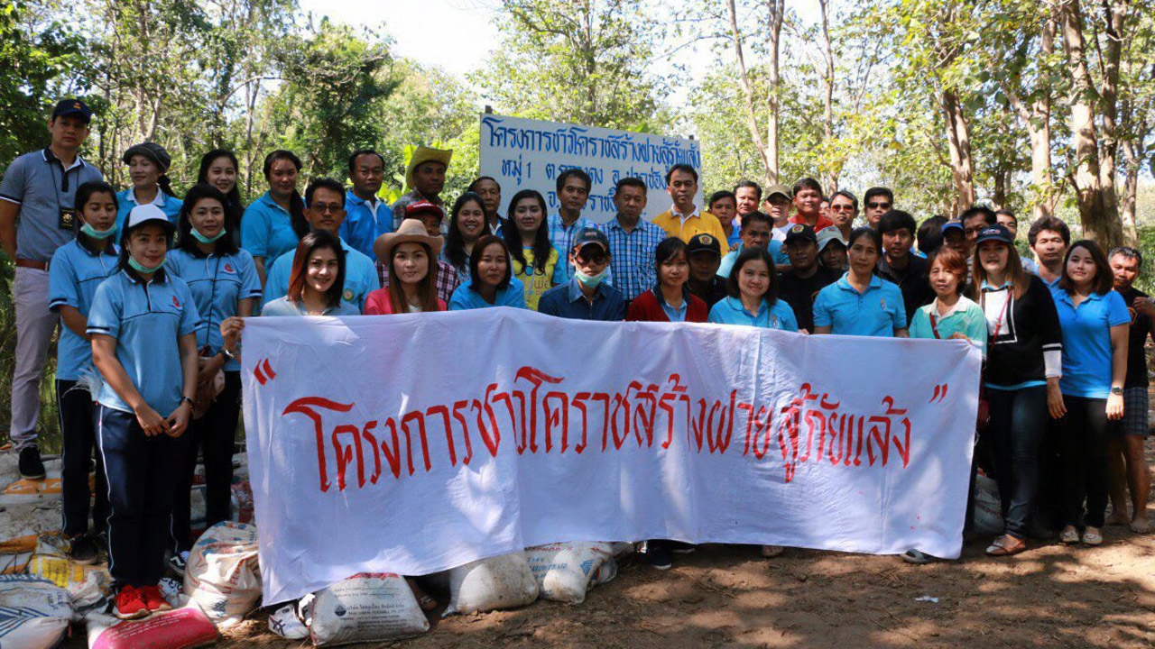 เมื่อวันที่ 2 พ.ย. นายวิเชียร จันทรโณทัย ผวจ. นครราชสีมา กล่าวว่า การก่อสร้างฝายกั้นน้ำเพื่อสู้ภัยแล้งในพื้นที่ทั้ง 32 อำเภอ ของ จ.นครราชสีมาขณะนี้ได้ดำเนินการไปแล้ว 31 อำเภอ ส่วนอีก 1 อำเภอ คือ อ.พิมาย อยู่ระหว่างดำเนินการ ฝายกั้นน้ำ ที่สร้างขึ้นเป็นฝายชั่วคราว การแก้ไขปัญหาในระยะ ยาวได้สั่งให้ อบต.ออกแบบในการก่อสร้างฝายกั้นน้ำ แบบถาวร และทางจังหวัดจะหางบประมาณสนับสนุน เพื่อแก้ไขปัญหาภัยแล้งในพื้นที่ได้อย่างยั่งยืนทั้ง 31 อำเภอ ได้ดำเนินการสร้างฝายกั้นน้ำแล้วทั้งสิ้น 156 ฝาย ปริมาณน้ำกักเก็บ 10,435,690 ลบ.ม. การสร้างฝายทำแบบพื้นบ้าน โดยนำกระสอบบรรจุ ทรายมาทำเป็นทำนบกั้นน้ำไว้ในการอุปโภคบริโภค โดยร่วมกับทหารกองทัพภาคที่ 2, กำนันผู้ใหญ่บ้าน, เจ้าหน้าที่ อบต. และชาวบ้านแต่ละพื้นที่ให้ช่วยกัน บรรจุทรายใส่กระสอบนำไปวางเรียงกั้นเป็นฝายเพื่อกักเก็บน้ำที่มีอยู่ตามลำห้วยไม่ให้ไหลลงสู่พื้นที่ ต่ำอย่างรวดเร็ว
