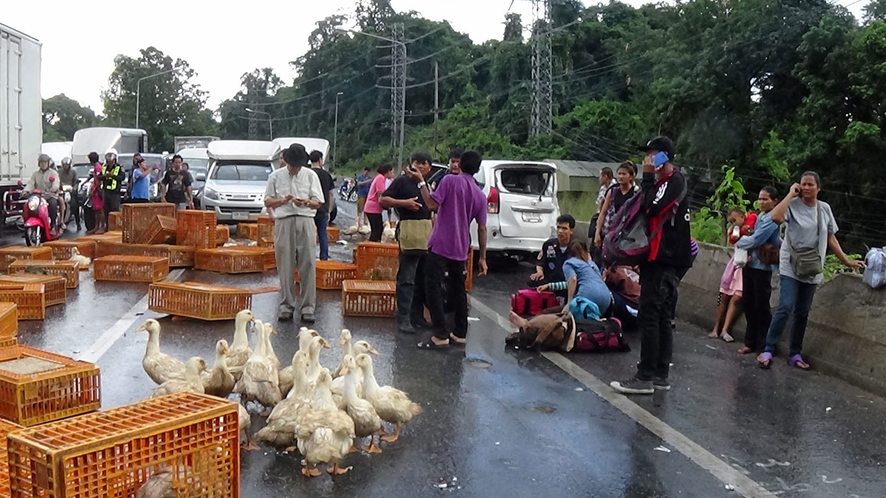 เทรลเลอร์ลงเขา ทล.304 ปราจีนฯ ชนเข้ากับรถหลายคัน ส่งผลให้มีผู้เสียชีวิต 6 ราย เจ็บอีก 3 ราย สาเหตุอยู่ระหว่างการสอบสวนของเจ้าหน้าที่ ส่วนที่สระบุรี ฝนตกถนนลื่น รถชนกันระนาว 14 คัน บน ถ.มิตรภาพ ทางลงเนินเขาจันทร์ หน้าค่ายเพชรรัชต์ มีผู้ได้รับบาดเจ็บเล็กน้อย 12 ราย เป็ดเดินเกลื่อน เจ้าหน้าที่ช่วยจับ...