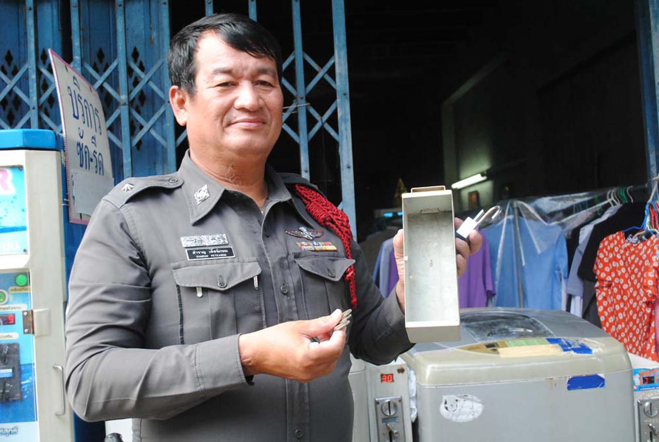 รอง สวป.สน.สำเหร่ ถูกโจรหยามหน้า งัดตู้ซักผ้าหยอดเหรียญกิจการเมียรักหน้าบ้านพัก เลยติดวงจรปิดจนเจอตัว เป็นหนุ่มตุ๊กตุ๊กพร้อมของกลางและรถสามล้อเครื่อง โดย จนท.กำลังเค้นความจริงคาดเคยก่อเหตุมา 2 ครั้งก่อนหน้านี้...