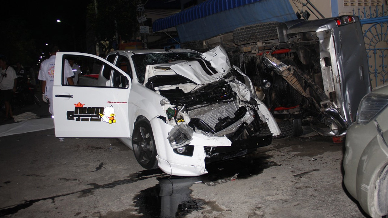 ที่เกิดเหตุยังพบรถยนต์อีซูซุ สีขาว หมายเลขทะเบียน ฒส 9525 กทม. คันที่ก่อเหตุ สภาพด้านหน้าพังยับเยิน และยังพบรถยนต์ ยี่ห้อ อีซูซุ สีบรอนซ์ หมายเลขทะเบียน ตษ 3941 กทม. พลิกตะแคง อยู่หน้ารถคันที่ก่อเหตุ ห่างไปพบรถโตโยต้า สีบรอนซ์ ทะเบียน ฒบ 1806 กทม. และรถยนต์โตโยต้า วีออส สีขาว หมายเลขทะเบียน กพ 7012 อุดรธานี และรถจักรยานยนต์ 1 คัน ยี่ห้อฮอนด้า ไม่ทราบหมายเลขทะเบียน พังยับอยู่ นอกจากนี้ตู้โทรศัพท์และท่อประปาอยู่ใกล้เคียงก็ได้รับความเสียหายอีกด้วย