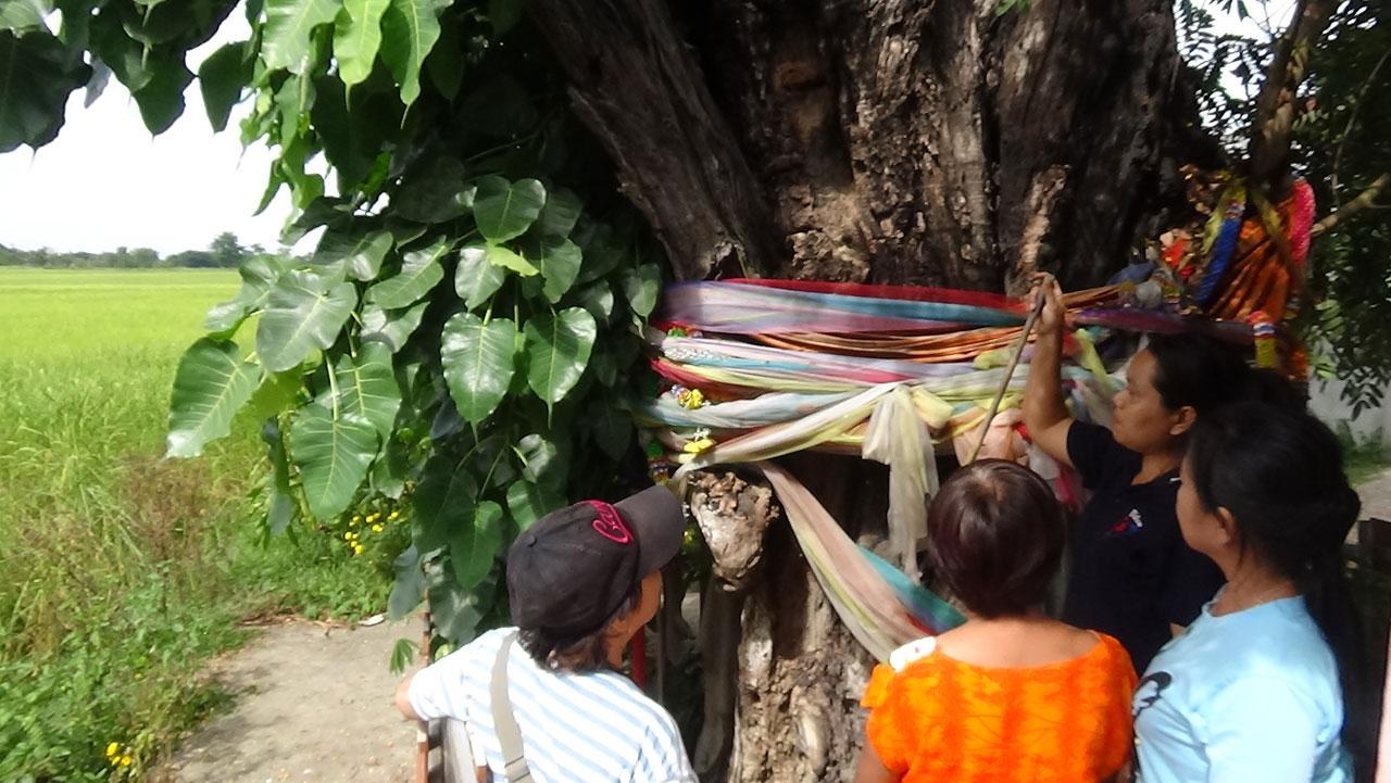 นางวรรณแดง ดวงตา อายุ 43 ปี อยู่บ้านเลขที่ 111 หมู่ 12 บ้านสันป่างิ้ว อ.เมืองพะเยา ซึ่งมีบ้านติดกับต้นขี้เหล็ก เผยว่า เดิมที่สถานที่ต้นขี้เหล็กขึ้นอยู่เป็นวัดเก่า ตามคำบอกเล่าของปู่ย่าตายายที่เล่าสืบต่อกันมาหลายชั่วอายุคนก็บอกว่าต้นขี้เหล็กนี้มีมาก่อนที่ทุกคนจะเกิดนานแล้ว เมื่อถึงวันพระใหญ่จะมีลูกแก้วลอยออกมา แล้วลอยกลับหายไปในต้นขี้เหล็ก
