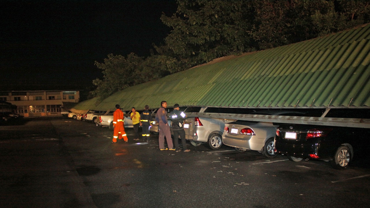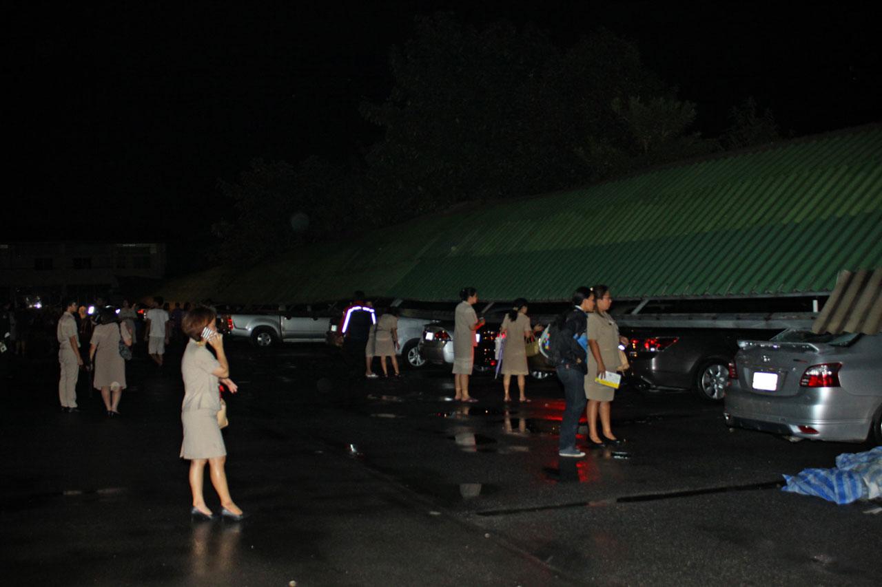 เมื่อเวลา 19.30 น. วันที่ 9 พ.ย.58 พ.ต.ท.ประเสริฐ พรมจันทร์ พนักงานสอบสวนผู้ชำนาญการพิเศษ สน.ธรรมศาลา รับแจ้งเหตุหลังคาโรงจอดรถภายในโรงเรียนนวมินทราชินูทิศสตรีวิทยาพุทธมณฑล (สตรีวิทยา 3) ถนนพุทธมณฑลสาย 2 แขวงทวีวัฒนา เขตทวีวัฒนา กทม. ถล่มทับรถยนต์ได้รับความเสียหายหลายคัน จึงรายงานให้ผู้บังคับบัญชาทราบก่อนรุดไปตรวจสอบในที่เกิดเหตุ พร้อมนายสุวิทย์ แสงเสน่ห์ ผู้อำนวยการเขตทวีวัฒนา และเจ้าหน้าที่กรมป้องกันและบรรเทาสาธารณภัย กทม.