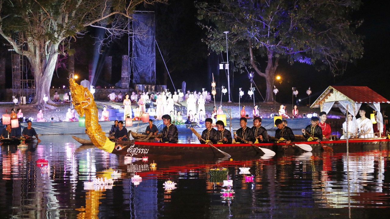ลอยกระทงสุโขทัย คืนวันที่สองคึกคัก นักท่องเที่ยวไทย-เทศ แห่เที่ยวตลาดแลกเบี้ย บริเวณศาลาสี่หลัง การแสดงตำนานท้าวศรีจุฬาลักษณ์ จัดขึ้นที่สระน้ำวัดสระศรี…