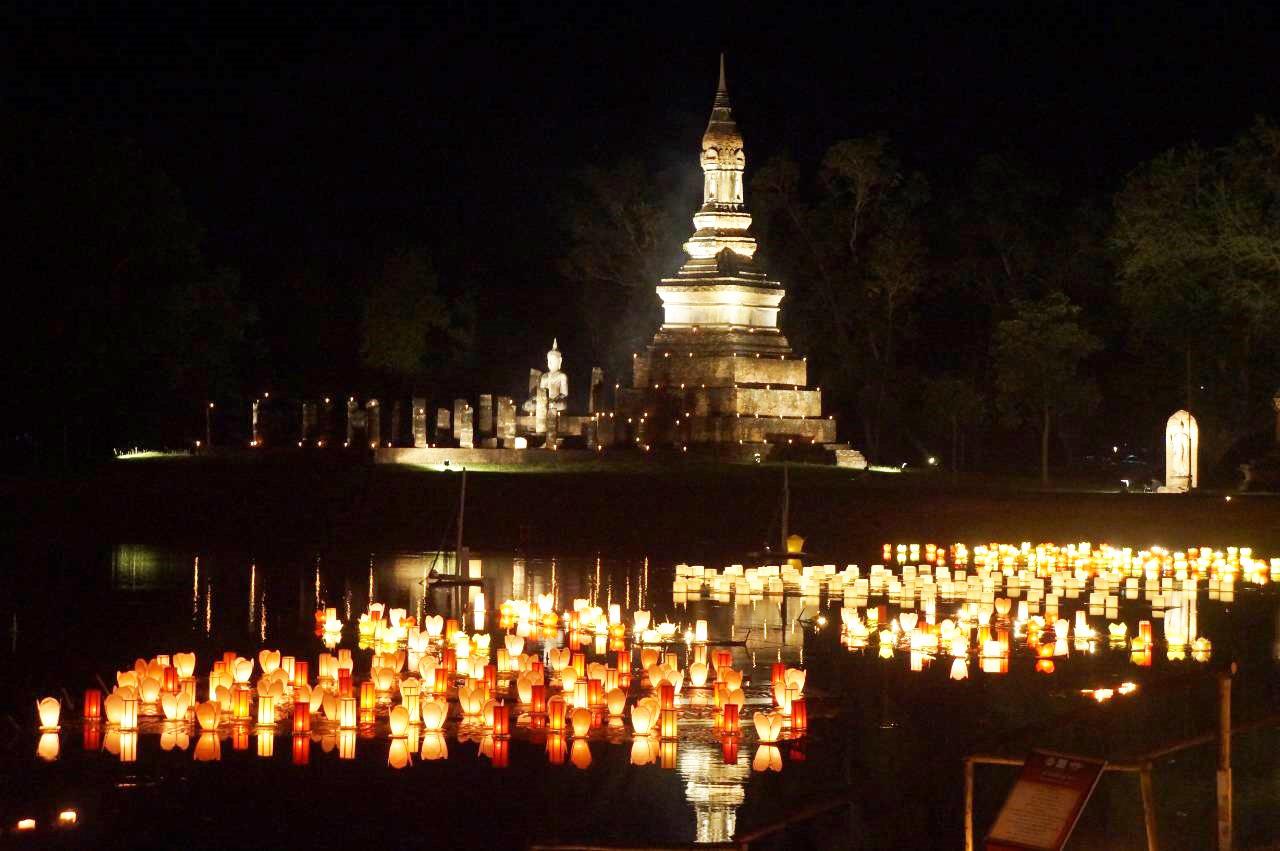 บรรยากาศงานประเพณีลอยกระทงเผาเทียนเล่นไฟ ภายในอุทยานประวัติศาสตร์สุโขทัย ซึ่งมีการแสดงแสงเสียง (Light&Sound) "ความรุ่งเรืองของนครสุโขทัย" อันยิ่งใหญ่อลังการ บริเวณวัดมหาธาตุ โดยจัดแสดงวันละ 1 รอบ ในเวลา 19.30 น. ปรากฏว่ามีนักท่องเที่ยวจำนวนมากผิดหวัง เนื่องจากตั๋วเต็มไม่สามารถเข้าไปดูได้ ทางจังหวัดตัดสินใจเพิ่มการแสดงอีก 1 รอบ ในเวลา 21.30 น. ของคืนวันที่ 25 พ.ย.ซึ่งเป็นวันสุดท้ายของการจัดงาน