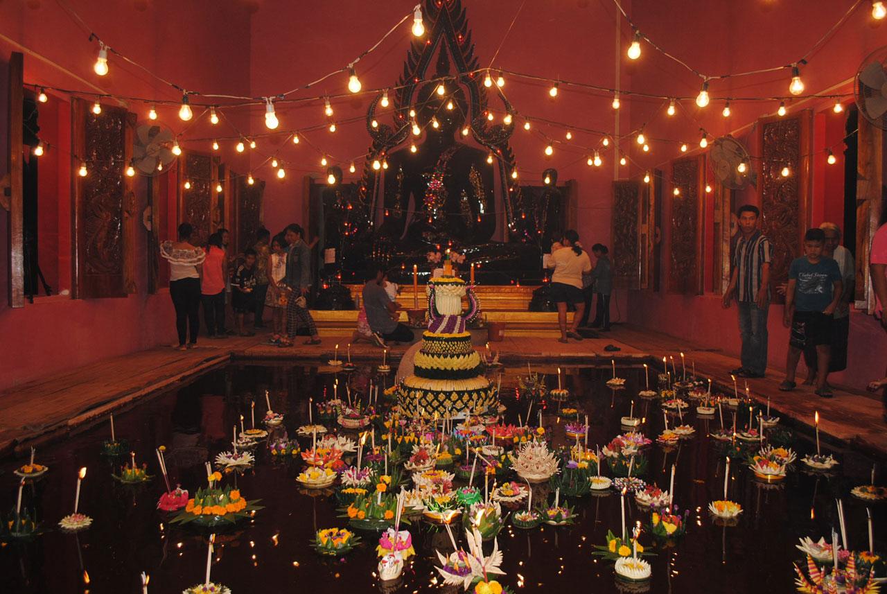 ขณะที่วัดเขาดินไพรวัน ม.4 ต.นาขุนไกร อ.ศรีสำโรง จ.สุโขทัย มีการจัดงานประเพณีลอยกระทงขึ้นภายในวัด รวมถึงการแสดงมหรสพต่าง ๆ นอกจากนี้ ที่แตกต่างจากที่อื่น ๆ คือ มีการจัดให้การลอยกระทงภายในโบสถ์ โดยทางวัดจัดทำสระน้ำไว้หน้าพระประธาน พระพุทธชินราช หน้าตักกว้าง 3.99 เมตร สูง 5.99 เมตร เนื้อทำจากเหล็กน้ำพี้ผสมกับแร่นิลสีดำสวยงาม