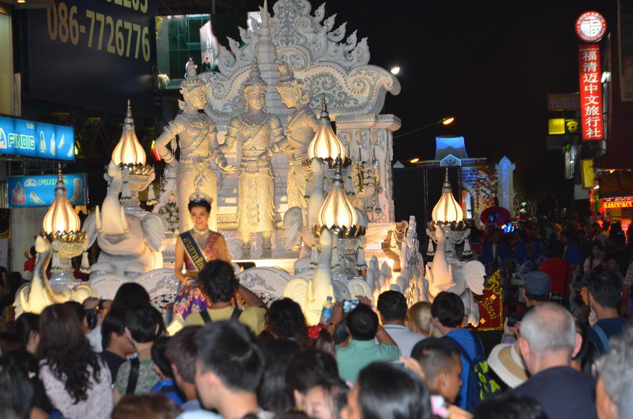 ขณะที่การประกวดกระทงใหญ่ จัดขึ้นเมื่อเวลา 18.00 น. ได้มีกระทงใหญ่จากหน่วยงาน รวมทั้งสถาบันการศึกษาหลายแห่งส่งเข้าประกวด ในปีนี้มีจำนวน 22 กระทงโดยขบวนแห่กระทงใหญ่นั้นเป็นไปอย่างคึกคัก ตลอดเส้นทางมีประชาชนและนักท่องเที่ยวจำนวนมากติดตามรอชมขบวนแห่กระทงใหญ่ ซึ่งตกแต่งอย่างสวยงามตระการตา โดยเริ่มเคลื่อนขบวนจากบริเวณประตูท่าแพ ไปตามถนนท่าแพและถนนไปรษณีย์ ก่อนจะไปสิ้นสุดขบวนที่หน้าเทศบาลนครเชียงใหม่ แต่เป็นที่น่าเสียดายระหว่างขบวนกระทงใหญ่ออกมาได้เพียง 3 ขบวน ได้เกิดฝนตกลงมาอย่างหนักจนน้ำไหลนองทั่ว ทำให้ผู้ร่วมขบวนนับพันต้องเปียกปอนไปหมด