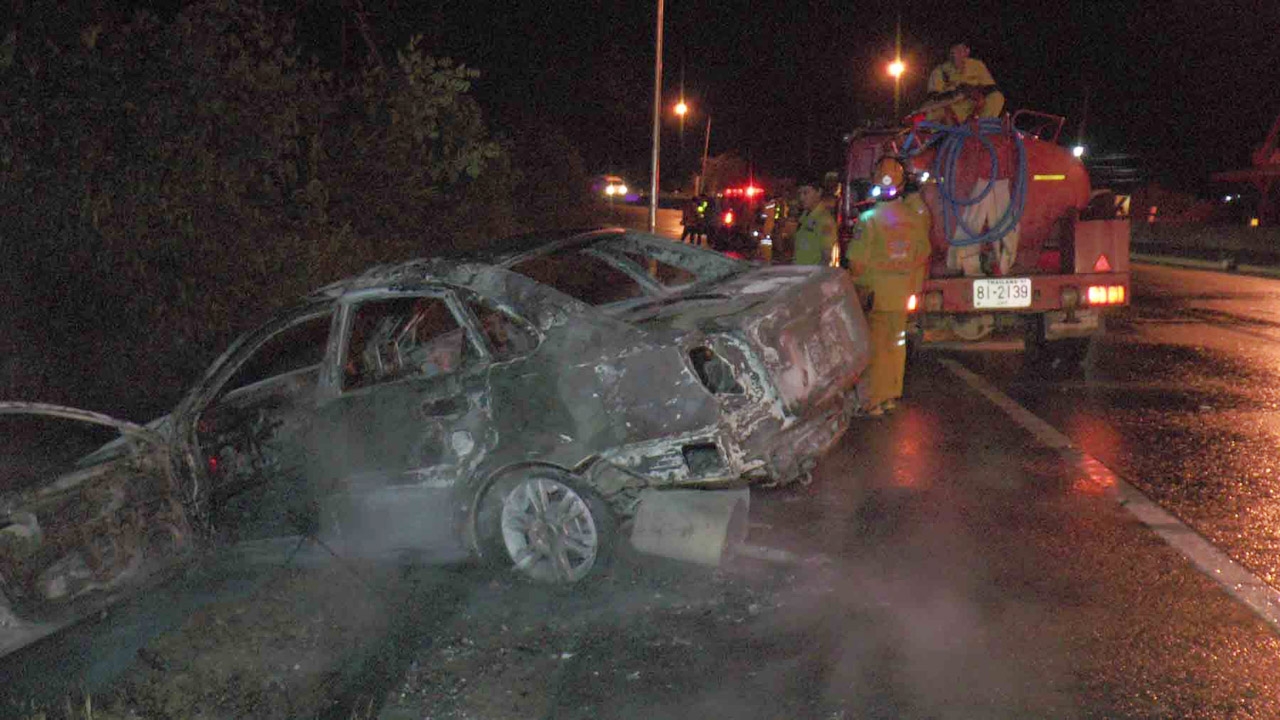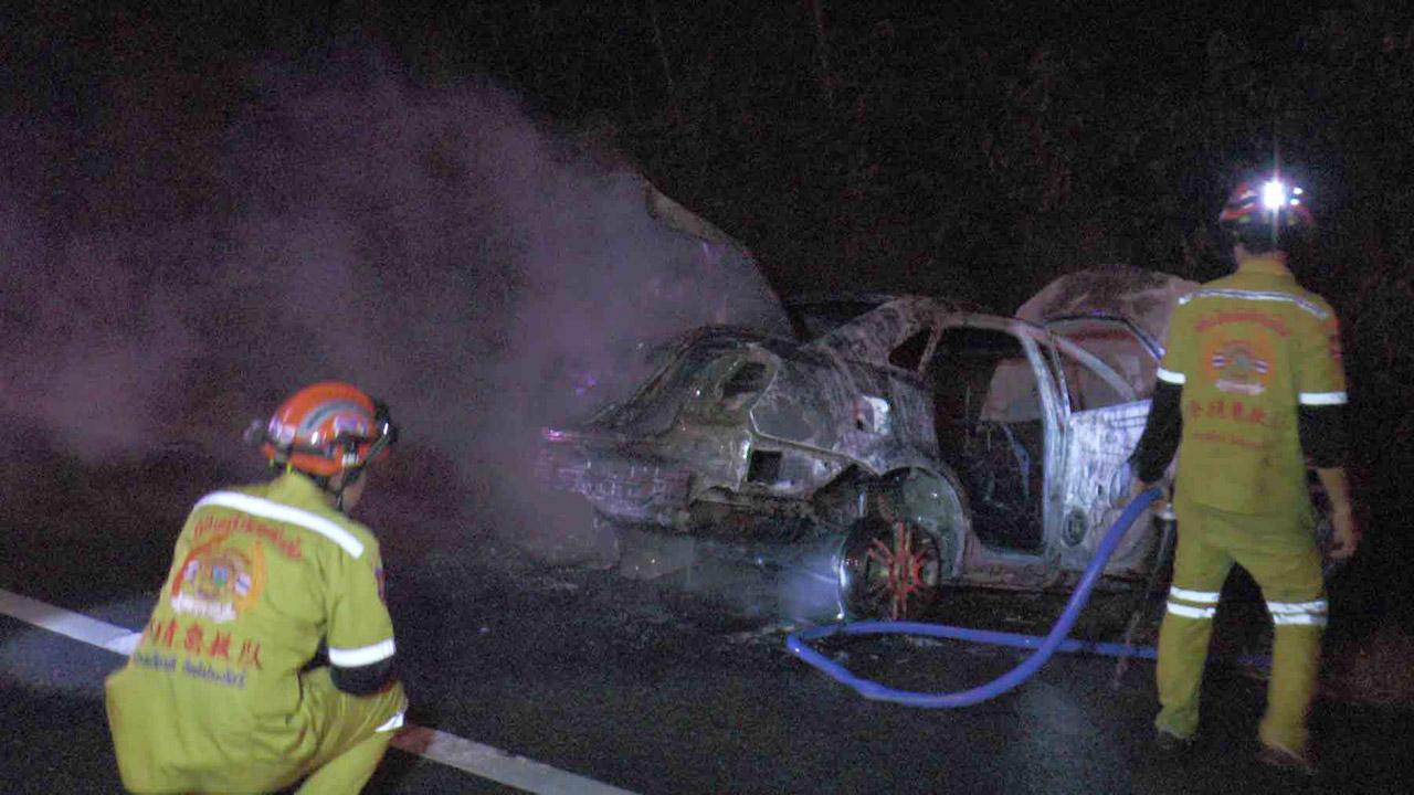 ตรวจสอบพบว่า รถถูกไฟไหม้ทั้งคันเหลือเป็นโครงเหล็ก สอบสวนทราบว่า คนขับชื่อ นายอาทิตย์ เทียนทอง อายุ 26 ปี อยู่บ้านเลขที่ 263 หมู่ที่ 7 ต.เด่นชัย อ.เด่นชัย จ.แพร่ เป็นคนขับ และได้ให้การว่าขับรถมาจากกรุงเทพฯ เพื่อจะมาร่วมงานบวชเพื่อน มาถึงที่เกิดเหตุเกิดมีฝนตกหนักในช่วงนั้น และเห็นมีกรวยวางอยู่บนถนน ซึ่งมีรถประสบอุบัติเหตุอยู่ก่อนแล้วด้านหน้า จึงได้ทำการเบรก แต่รถเกิดเสียหลัก เนื่องจากถนนลื่น รถได้พุ่งเข้าชนเกาะกลางถนน และเสียหลักพุ่งลงไปชนกับแนวปูนกั้นข้างทางอีกที ทำให้เกิดไฟลุกขึ้นที่หน้าห้องเครื่อง จึงได้รีบเปิดประตูออกมาจากรถกับเพื่อนอีกคน และไฟก็ได้ลุกไหม้ตลอดทั้งคัน ทำให้เสียหายเหลือแต่โครงเหล็ก