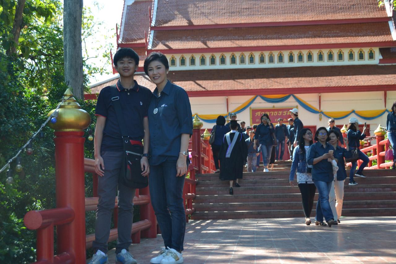 เมื่อวันที่ 6 ธ.ค.58 น.ส.ยิ่งลักษณ์ ชินวัตร อดีตนายกรัฐมนตรี พร้อมกับ ด.ช.ศุภเสกข์ อมรฉัตร หรือ น้องไปป์ ลูกชาย ได้เดินทางมาร่วมงานสิงห์ขาว มช. รุ่น 21 คืนถิ่น ที่เพื่อนร่วมรุ่นจัดขึ้นที่โรงแรมแห่งหนึ่งในตัวเมืองเชียงใหม่ โดยในช่วงเช้า ได้เข้าไปทำกิจกรรมที่คณะรัฐศาสตร์ มหาวิทยาลัยเชียงใหม่ กับเพื่อนร่วมรุ่นที่มาร่วมงานกว่า 30 คน พร้อมกับมอบทุนการศึกษาให้กับรุ่นน้อง และพาเพื่อนศิษย์เก่าสิงห์ขาว รุ่น 21 ได้เดินทางมาถ่ายรูปหมู่ร่วมกันที่หน้าบริเวณในศาลาธรรม ภายในมหาวิทยาลัยเชียงใหม่ บรรยากาศเป็นไปด้วยความชื่นมื่นสนุกสนานทักทายกันตามประสาเพื่อนฝูง